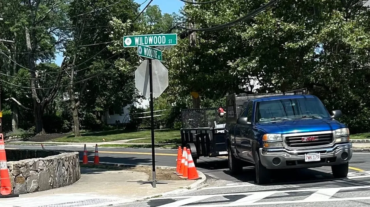 July 10, 2023. Although “shovels were already in the ground,” when the new town engineer was hired recently, Matt Shuman is optimistic that the intersection at Wildwood St. and Woodside Rd. will do a good job of calming traffic. Residents complain on the Winchester Residents Facebook page (which Shuman doesn’t read) that the intersection doesn’t have enough room for two lanes of traffic approaching the stop sign. But Shuman says the Wildwood Street center line has been restriped and the Woodside lanes are of different dimensions to allow easier turning from Wildwood.