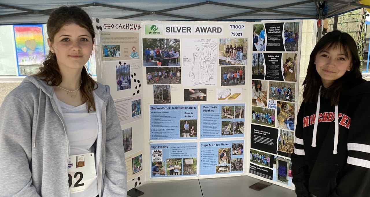 “For a town as developed as Winchester, we are fortunate to have several sizable, well-preserved conversation spaces,” said David Miller, Conservation Commission Chair. “The commission is proud to be overseeing their management but is absolutely dependent on volunteers to do critical infrastructure work. Scouts have been invaluable volunteers and, notably, the Girl Scouts at Sucker Brook.”