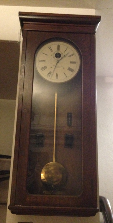 When you’re in the lower level hallway near the restrooms, do you ever wonder why we keep a dead clock by the stairs? Well, it’s more than that. It’s the original clock that controlled the chimes.