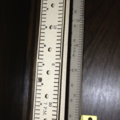 There is a paper tape loop with holes (see photo) and a reader inside the case, running along the left. When the old clock worked, its movement would move the paper tape. When a hole was reached, a switch closed, and the unit up in the bell tower got to work and rang the chimes. Whenever the weights reached the floor, the motor turned on and lifted the weights back up to be ready to ring the chimes again. The paper tape system died years ago. Who knows if the clock would still work if we wound it?