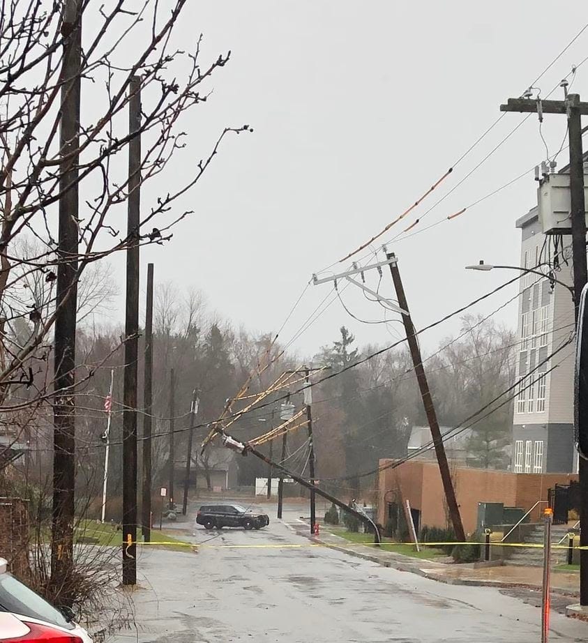 There were reports of wires down on almost a dozen roadways in Winchester. One utility pole with wires attached near Highland Avenue and Sargent Road snapped off after being hit by a tree and caused a power outage. There were no reports of fire to Winchester Fire Department but one incident with wires down on Dunster Lanedid start a small fire in some leaves.