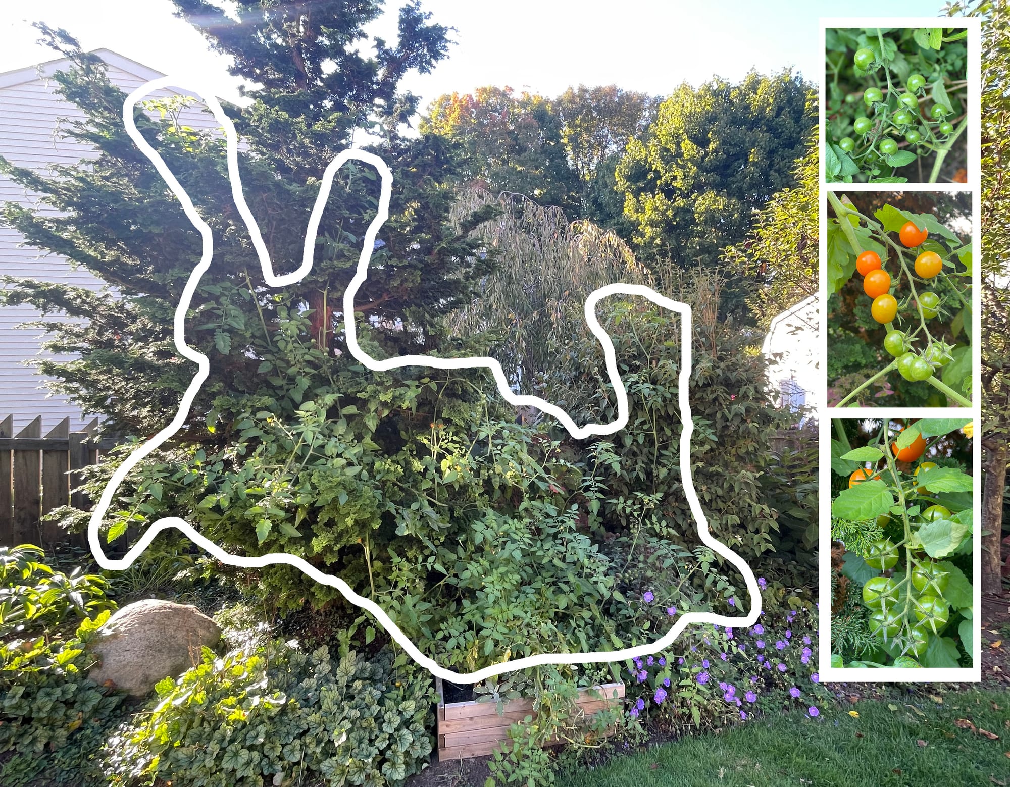 LEFT TO RIGHT: ORNAMENTAL KALE by Mary J. Murray; RED-VEINED SORREL by August Westner, and CHERRY TOMATOES sent in by Karen Lynch from her neighbor Sue’s yard.
