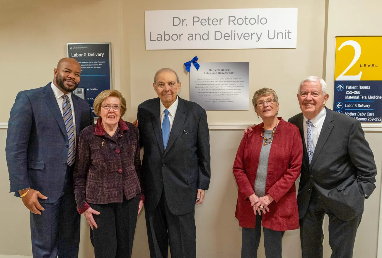 “We are honored and very grateful to Cummings Foundation for their generous gift,” said Al Campbell, RN, FACHE, president of Winchester Hospital. “During his tenure, Dr. Rotolo touched the lives of thousands of mothers and babies and was highly respected by his patients and peers. He will always be known for his professionalism, his leadership in the Winchester community, and his compassionate care, and we are thrilled that Cummings Foundation chose to honor his legacy through the naming of this unit.”