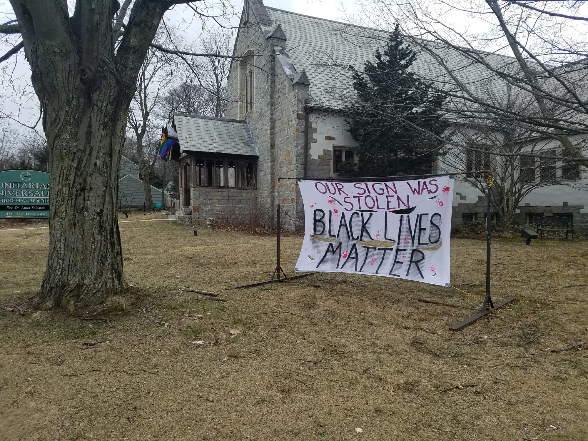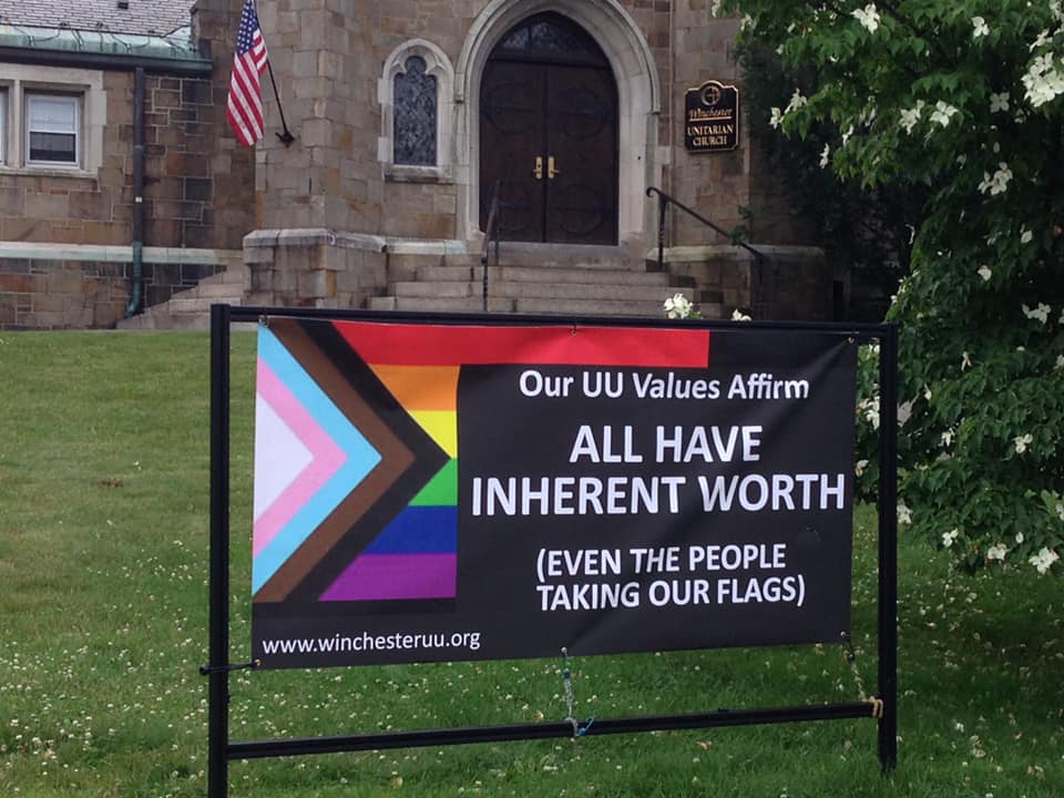 “Frustrating, disturbing and offensive.” That’s how Rev. Heather Janules describes the ongoing vandalism of the Black Lives Matter flag at the Winchester Unitarian Society, where she has been pastor since 2015.
