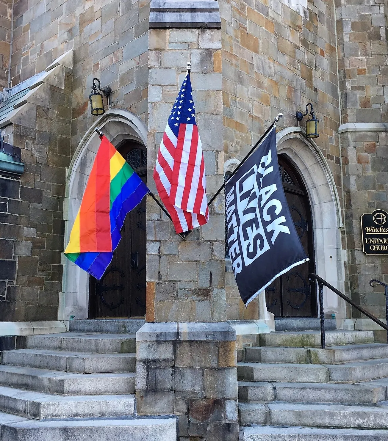 The church first raised the BLM flag in 2018 following a special meeting held by the entire congregation in support of racial justice. A Pride Progress flag, as well as an American flag, were already flying at the 478 Main St. location.