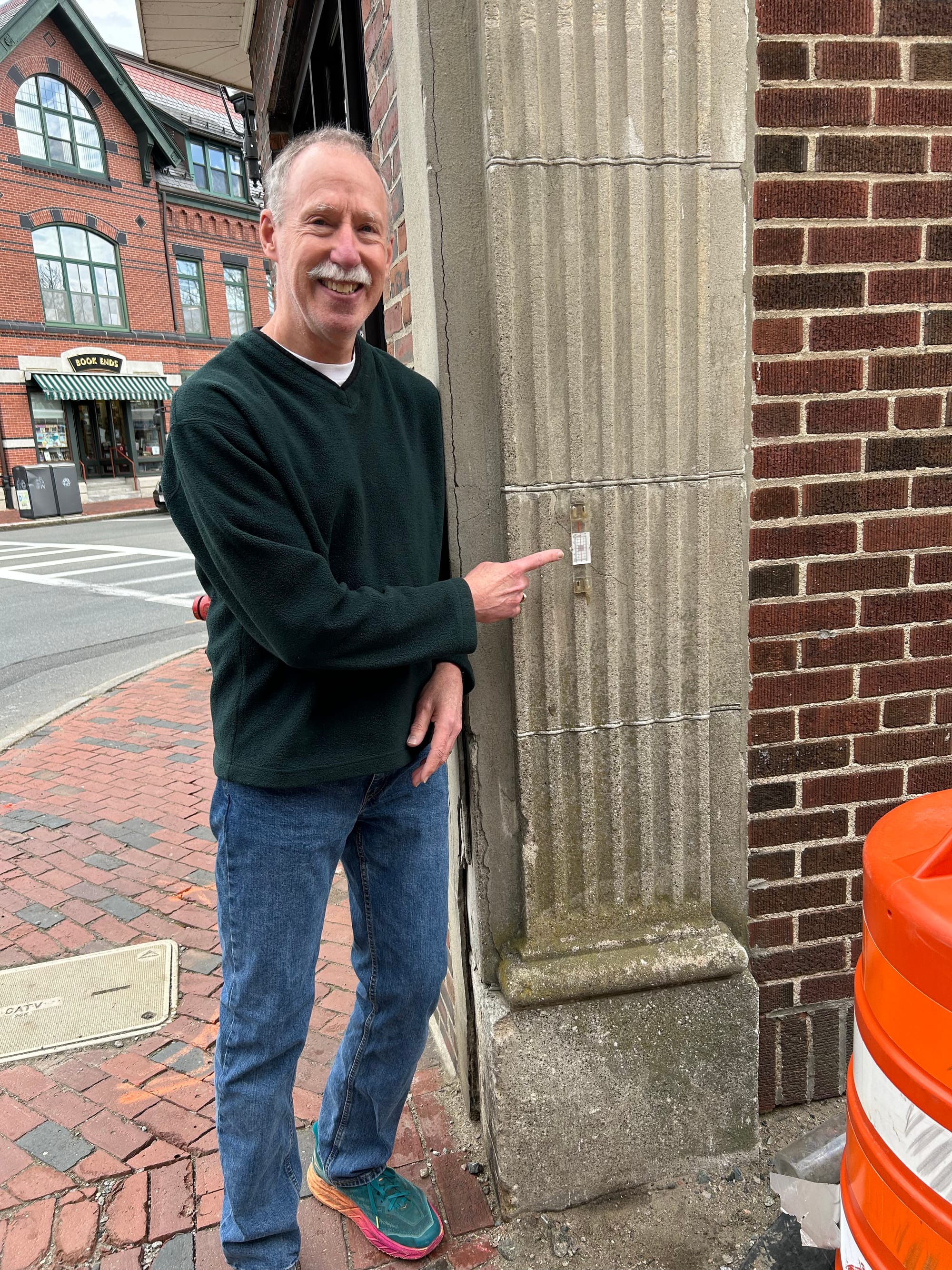 Arwe emailed, “I did the Main Street bridge, the Waterfield Road bridge, the Mt. Vernon Street bridge, the bridge to Sandy’s Island, the Shore Road bridge, the commuter rail bridge at the circle, and then...I saw the fluted concrete column I had spent days looking for: on the corner of the Get In Shape For Women shop.”
