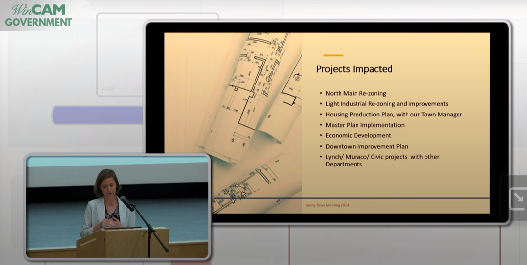 Chair Keri Layton asked Town Meeting to consider replacing money cut by the Finance Committee for an assistant town planner. The position has been deferred since fiscal year 2020.