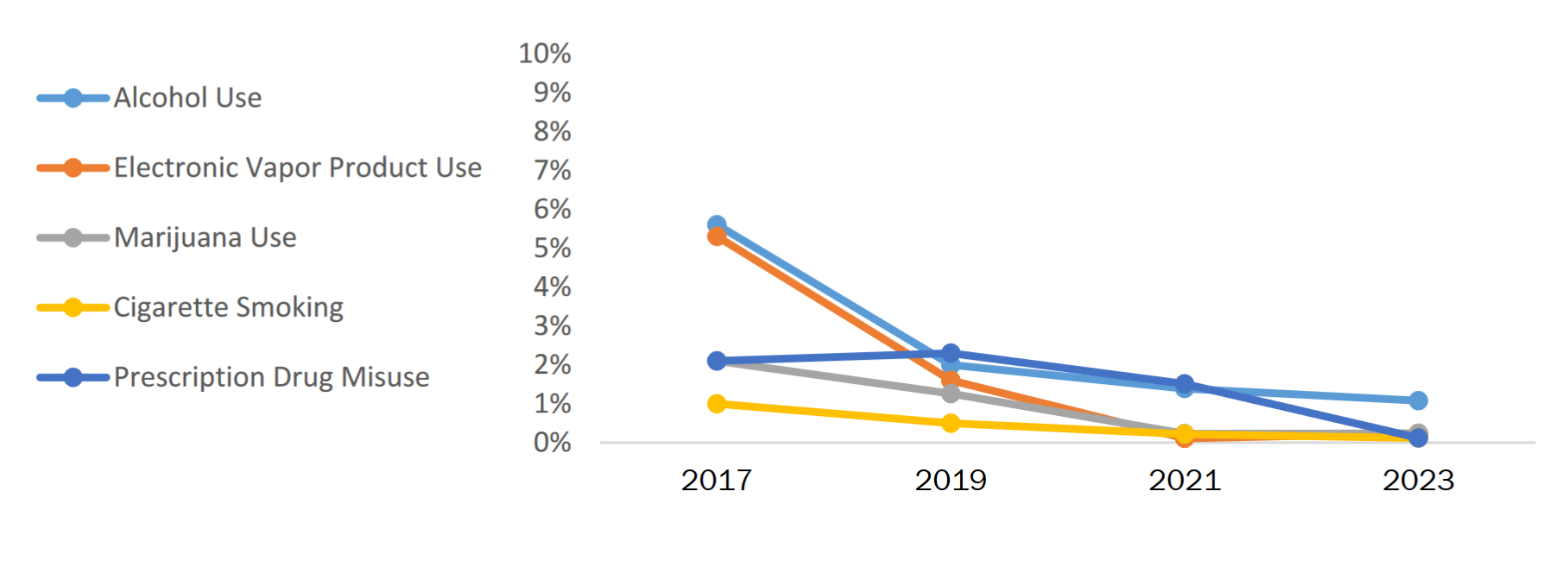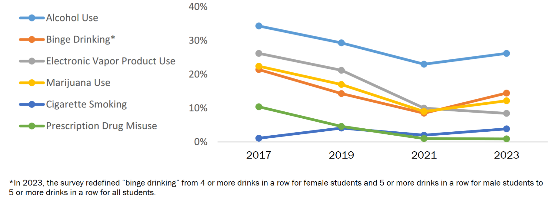 Winchester High School results from the Youth Risk Behavior Survey regarding substance use. COURTESY PHOTO/WINCHESTER PUBLIC SCHOOLS