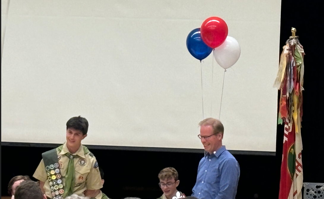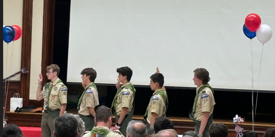 Standing by the stage at the front of the basement floor on June 8, looking over a room decorated with red, white, blue, and eagle symbols, the five boys were all smiles. After all, even amongst the more than 1 million Scouts across the nation, only 6% will earn the coveted distinction of Eagle Scout by the time they graduate high school.