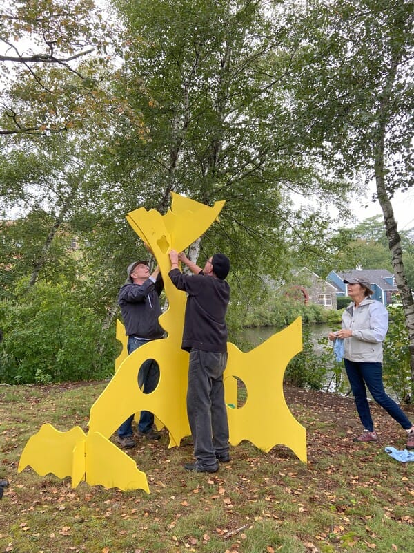 Anchored by four sculptures, the Riverwalk exhibit is currently “augmented” by 12 virtual pieces using Hoverlay, a spatial web platform.