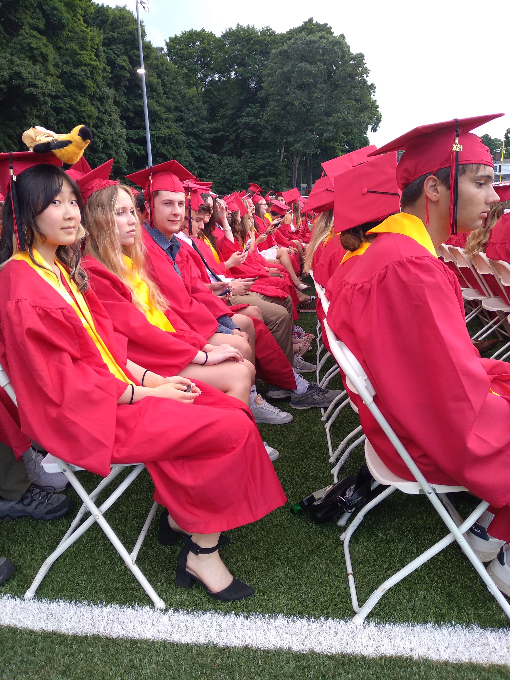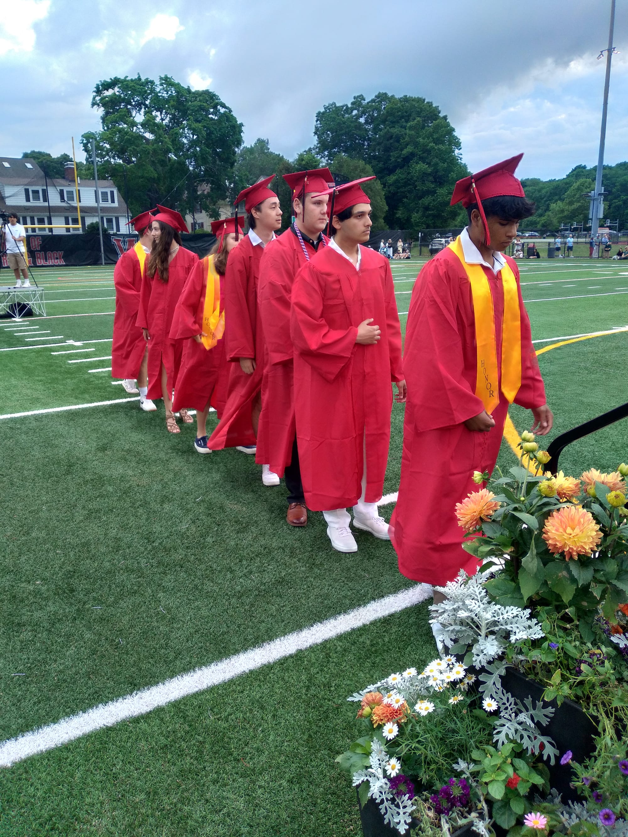 Given the morning fog and possibilities of rain, the idea of moving the ceremony to the high school gym was considered, but the sun came out in the afternoon and, despite dark clouds that evening, the rain held off.