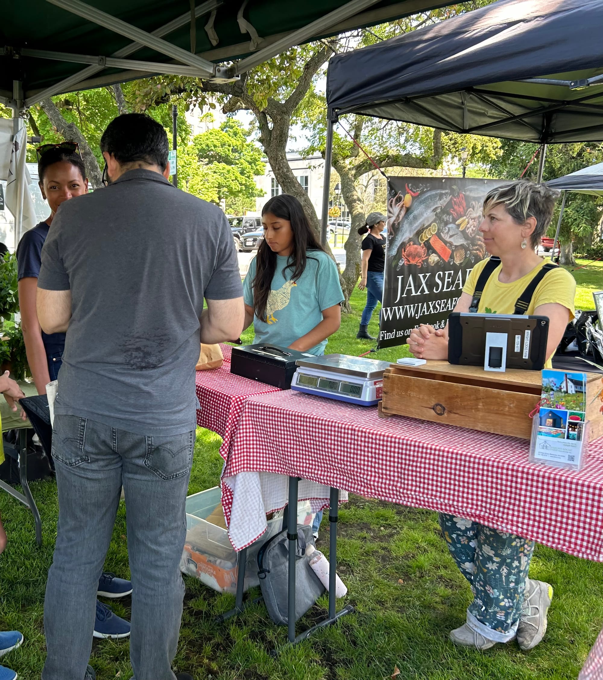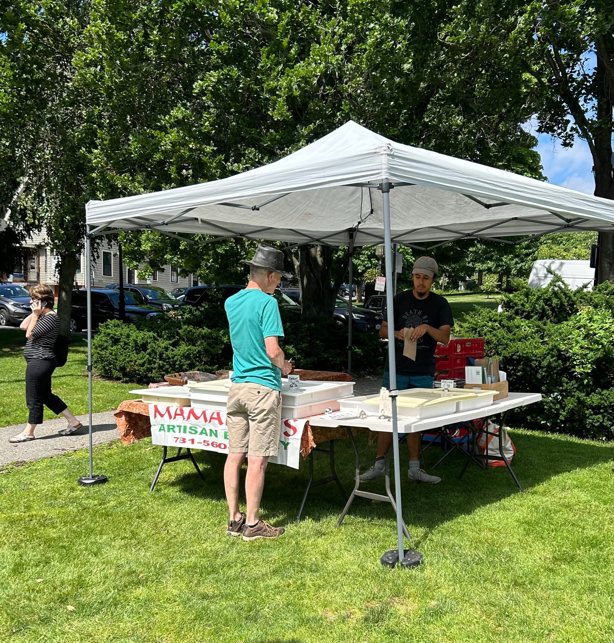 In addition to local farms selling produce, there’s always an artist plus artisans (full disclosure: your reporter bought a lovely new handbag). Mamadou’s Bakery sells out of chocolate croissants fairly quickly, but they always have plenty of breads, and Isobel Magee’s scones are a bestseller.