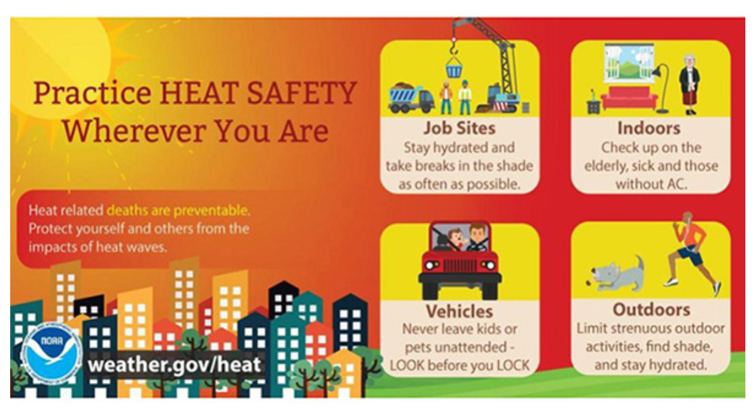 “Stay in a cool environment, stay hydrated and avoid overexertion,” he said. “Jogging in the middle of the day or doing yard work is a recipe for trouble.”