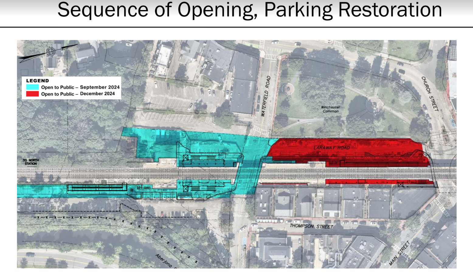 • Return of parking to the Waterfield and Aberjona lots.