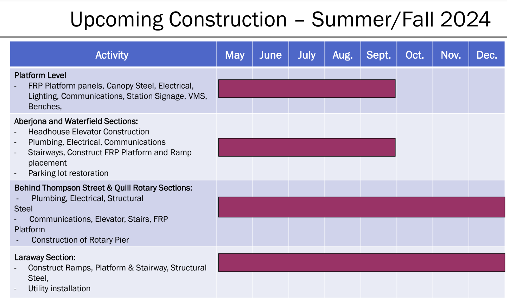 “I want to tell the public that we are very committed to opening the station in September,” said Maribel Kelly, deputy chief of capital delivery. “Our project is a priority and unless something catastrophic happens, my team is constantly [on] the project, following the schedule. Hopefully, we are not causing that much of an impact in your lives. We are looking forward to opening the station.”