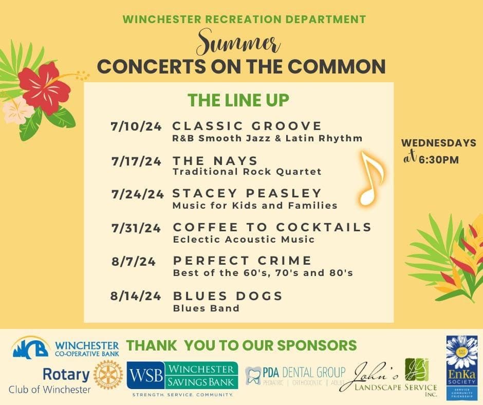 Winchester remains one of the few communities that still have evening concerts. Ulacco said the Recreation Department applies for grants from the Massachusetts Cultural Council and the Rotary every year. Additional sponsors, he said, also give money for the program.