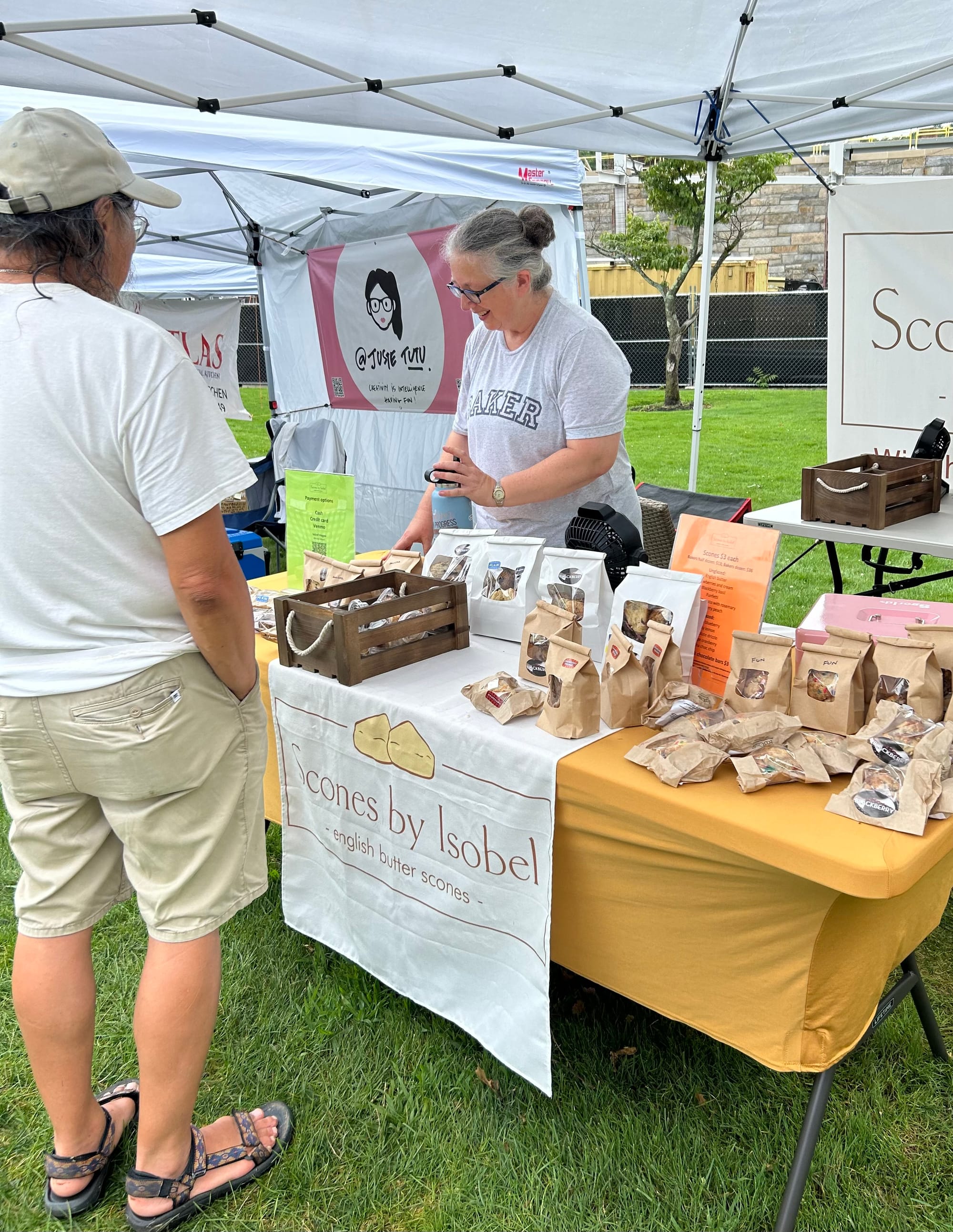 And they learn other aspects of business, such as how to do the selling and keep track of sales, and how to market themselves. Case in point, he says, “is Scones by Isobel. She’s doing great, she reaches out and hypes her products,” even offering free samples. [Full disclosure: your writer bought several orange scones.]