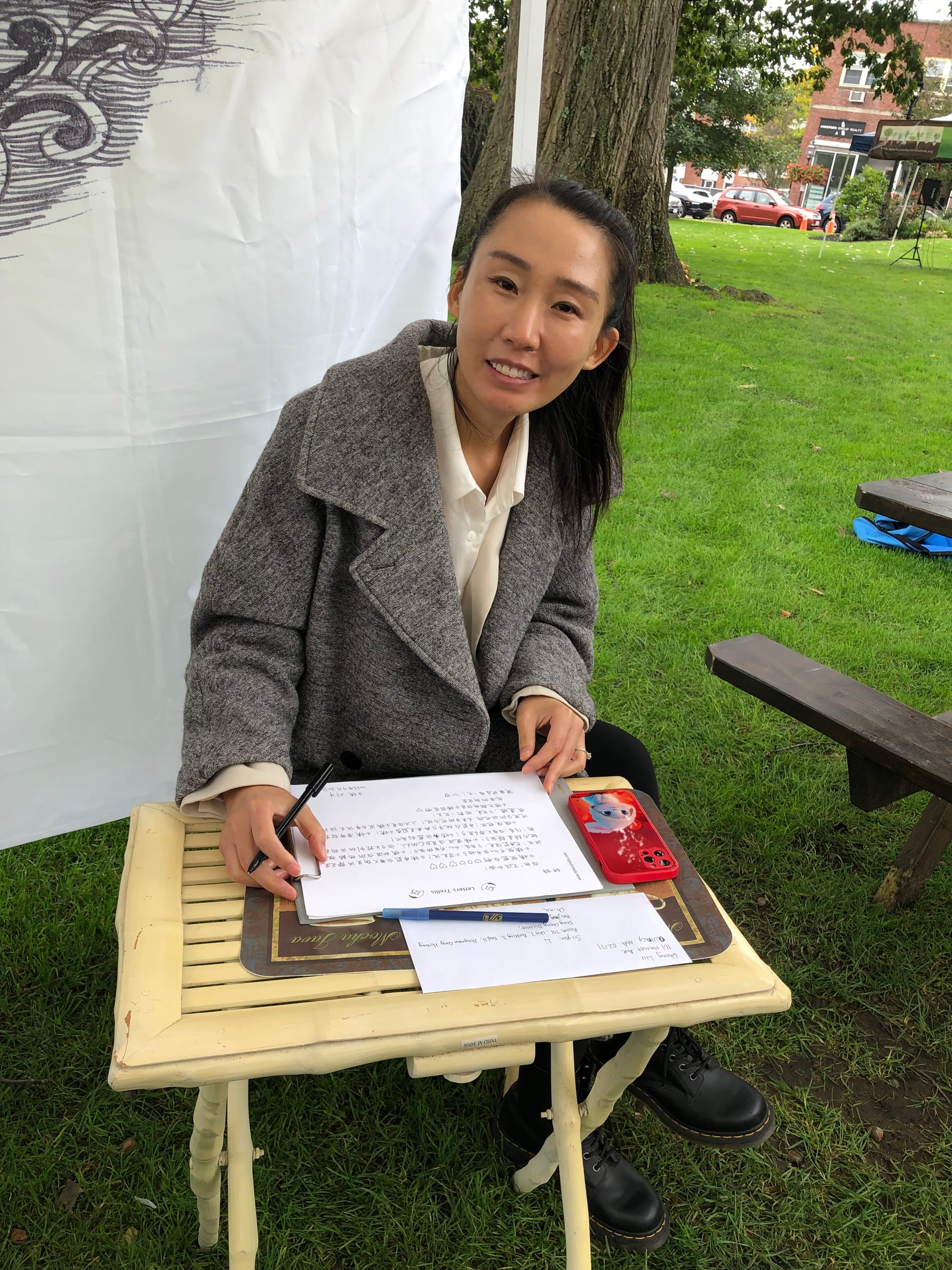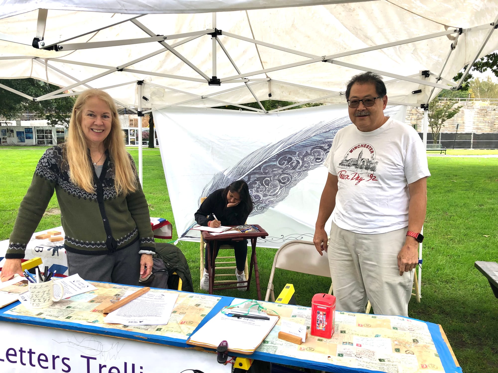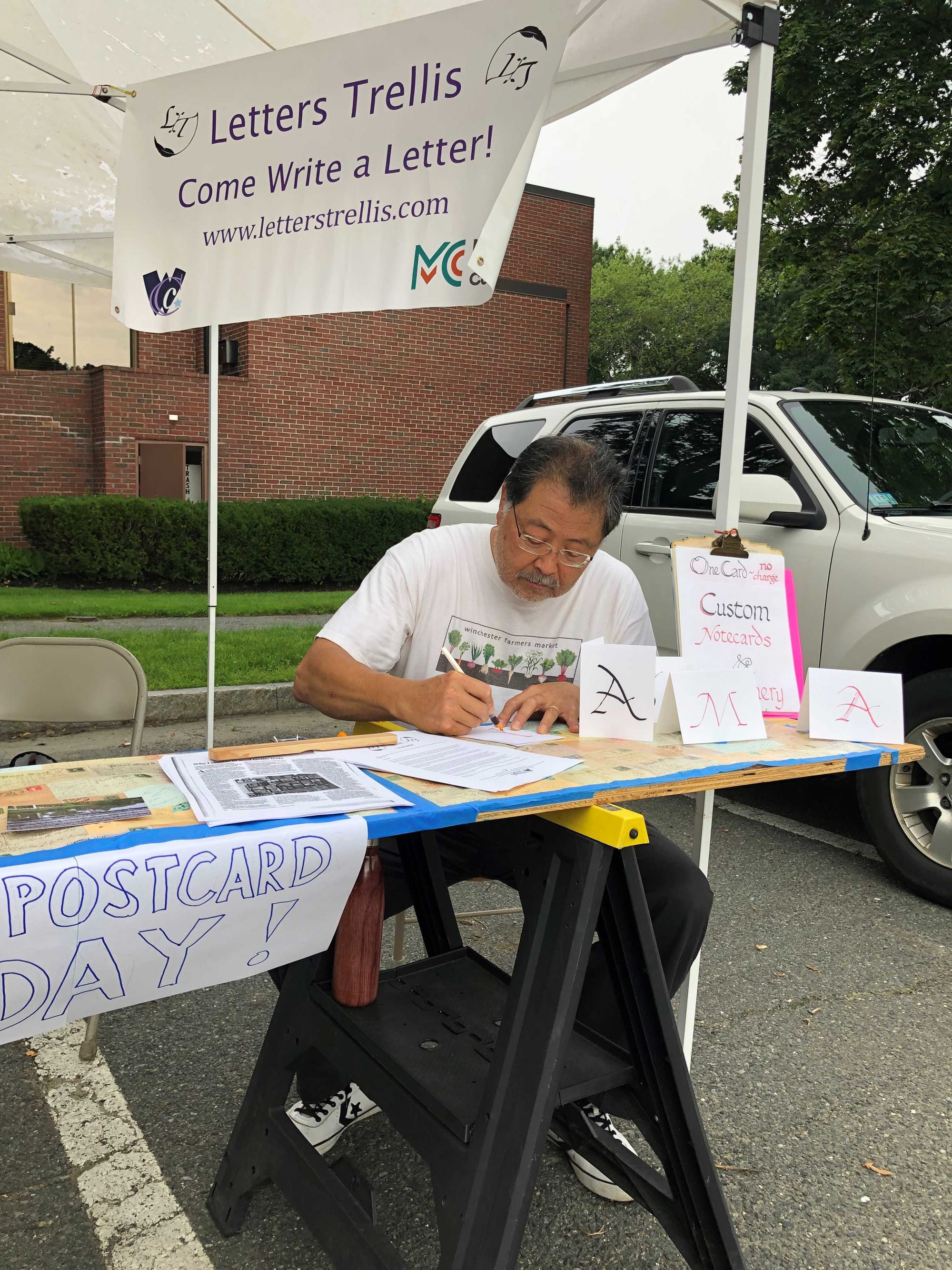 “Shukong and I discovered we had a mutual love for letters,” Fullerton said. “Then we started batting around ideas. What if we applied to the Cultural Council, would they support it? Then we brought it to the farmers market.”