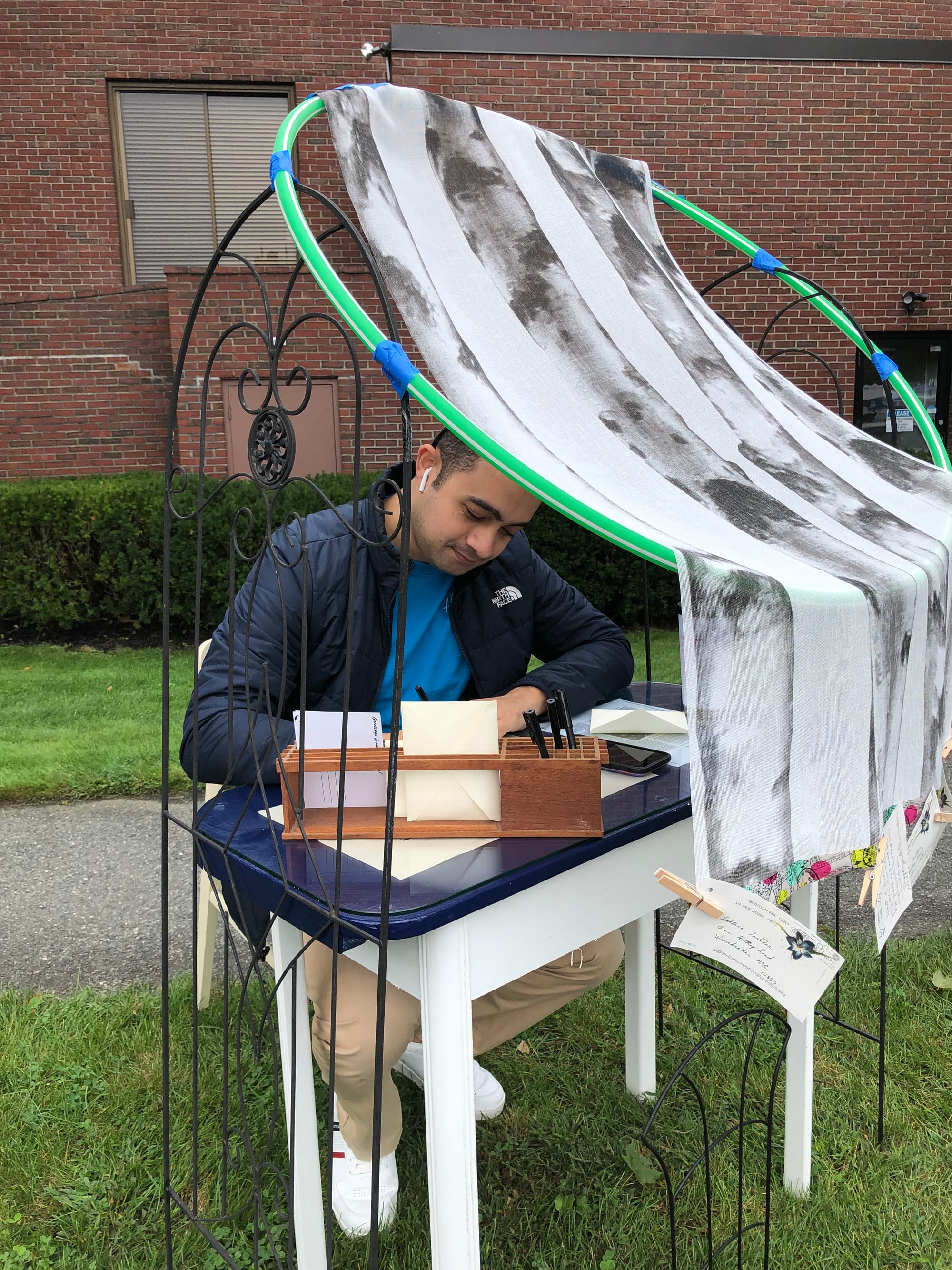 “We were in the Town Hall parking lot,” Ou said, of that first Letters Trellis outing under COVID restrictions. “We were on asphalt and people were afraid to touch. Then the news came out that it would be OK to touch the mail if you left it out for three days. So we figured people would be able to receive letters and have that tangible connection to another person.”