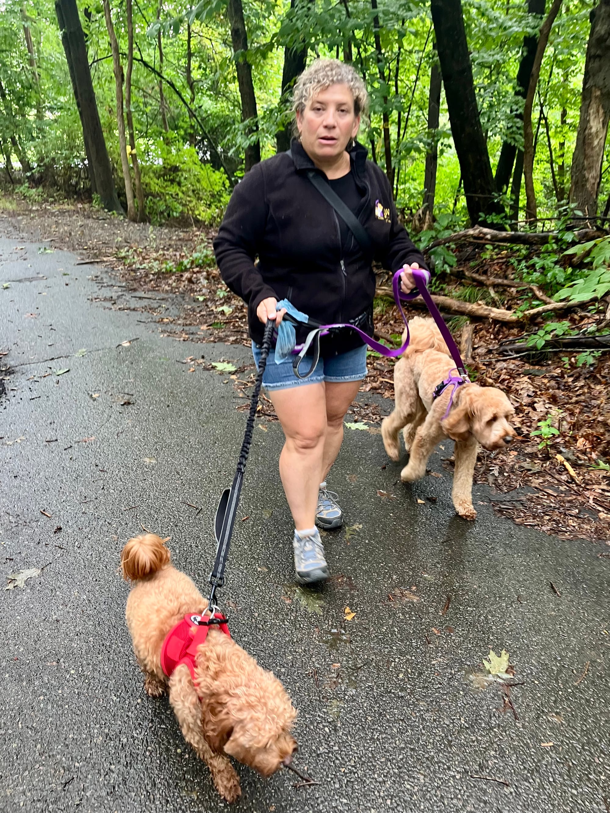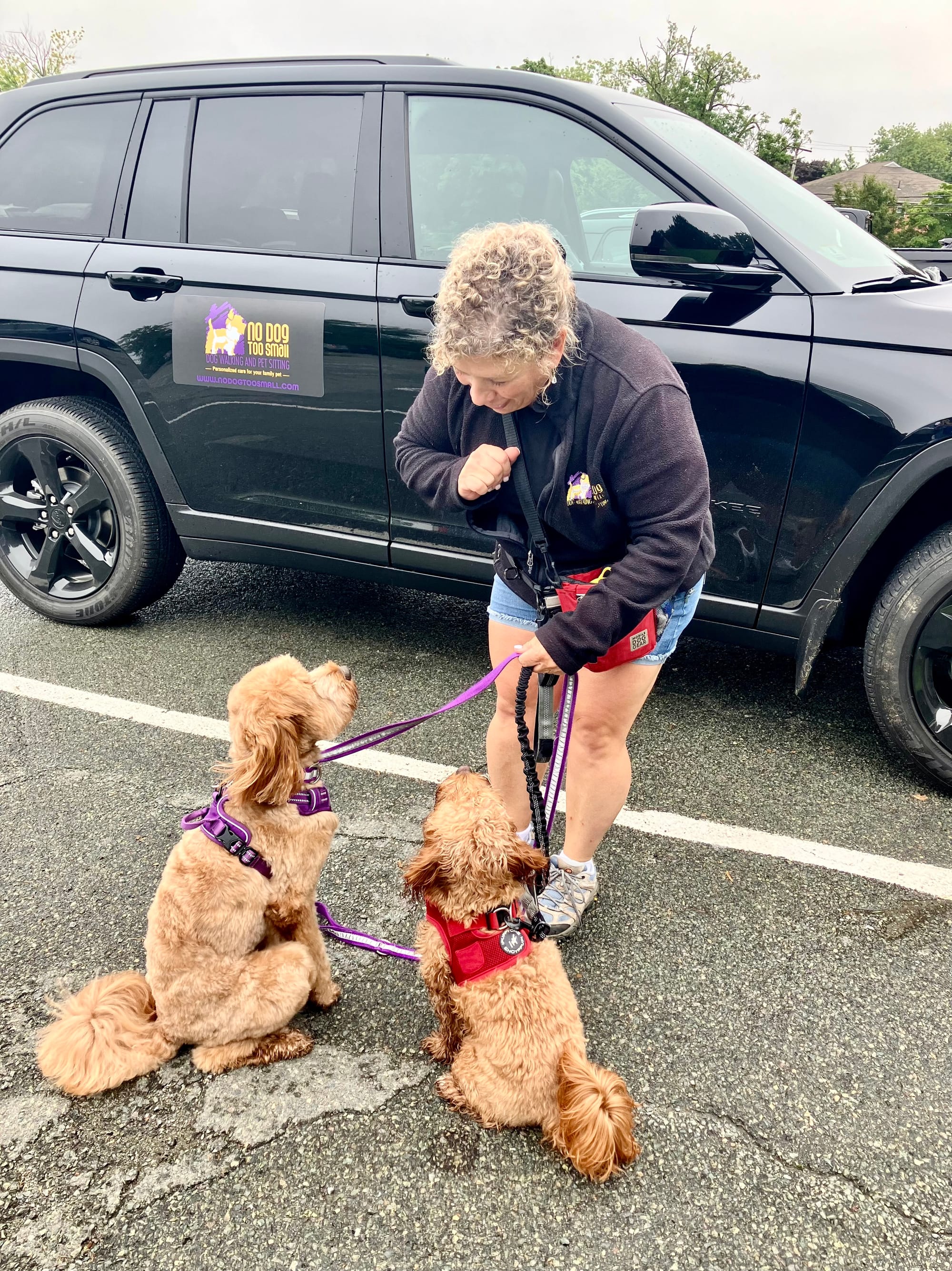 She also offers a walk and train program, which is what she was doing with Jesse and Cooper on that rainy Friday.
