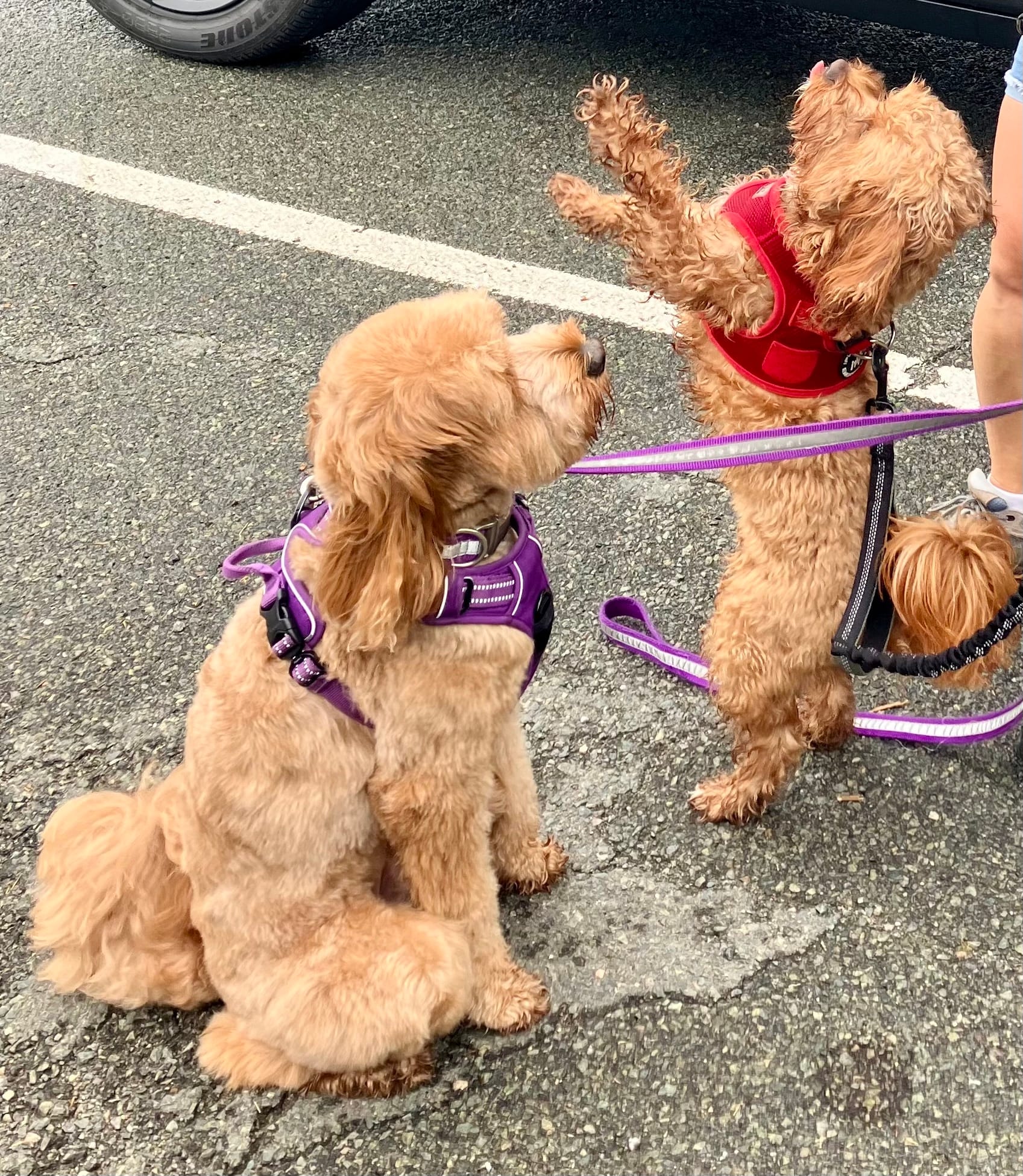 Cooper is just a year and a half old, Jesse is a little older, Maida explained. Walking the dogs one-on-one or two-on-one as it were, gives her the ability to spot certain behaviors that she can then redirect. She said she likes to walk Jesse and Cooper together because they have a nice rapport and Cooper takes behavioral cues from Jesse — most of the time.