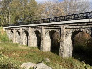 Hollison used CPA funds to restore the 8-Arch Bridge, left, and the Upper Charles Rail Trail, 24 miles of non-operational railway land in various states of repair, all connecting the towns of Holliston, Milford, Hopkinton, Ashland, and Sherborn. COURTESY PHOTOS/COMMUNITY PRESERVATION COALITION