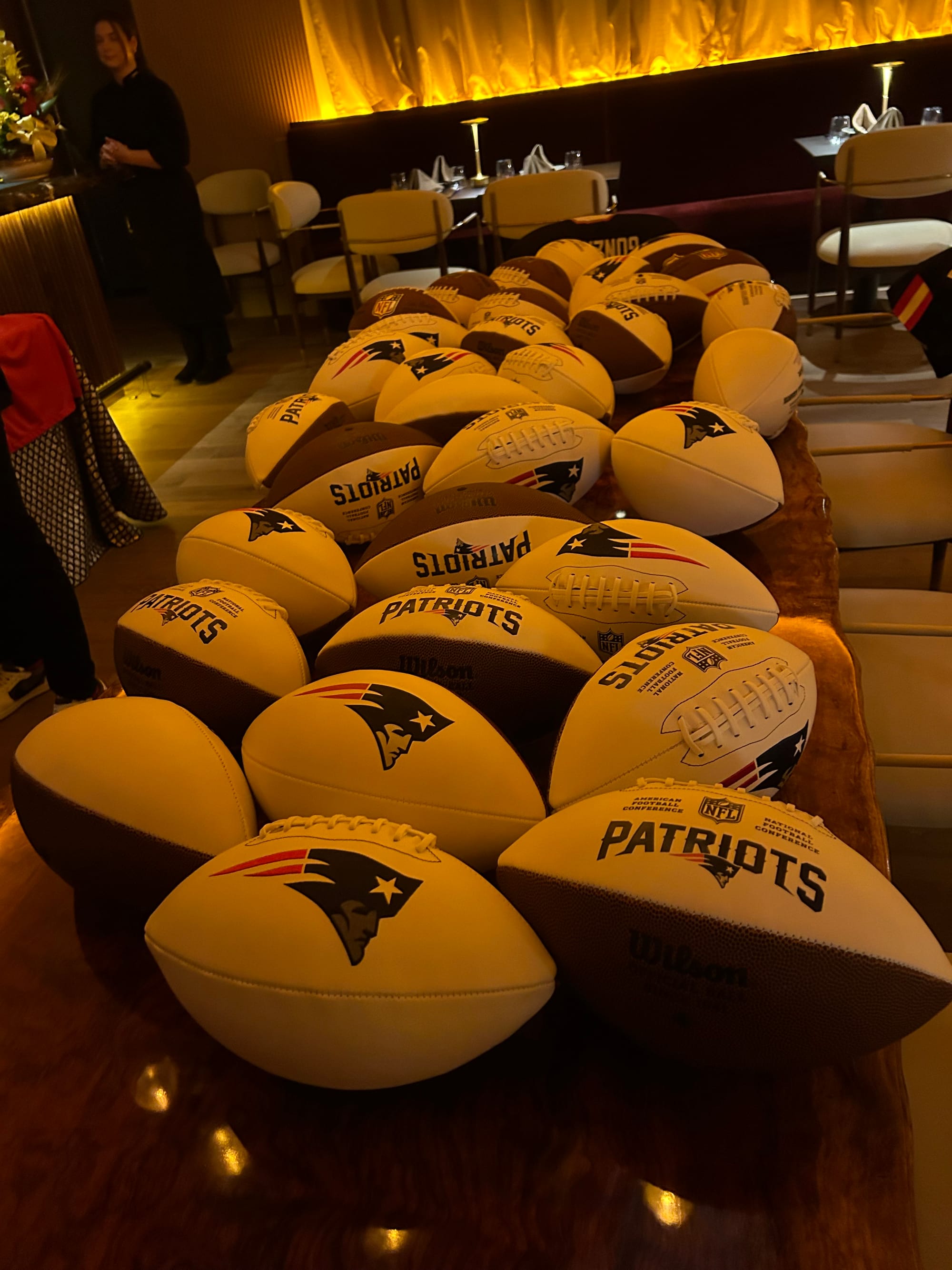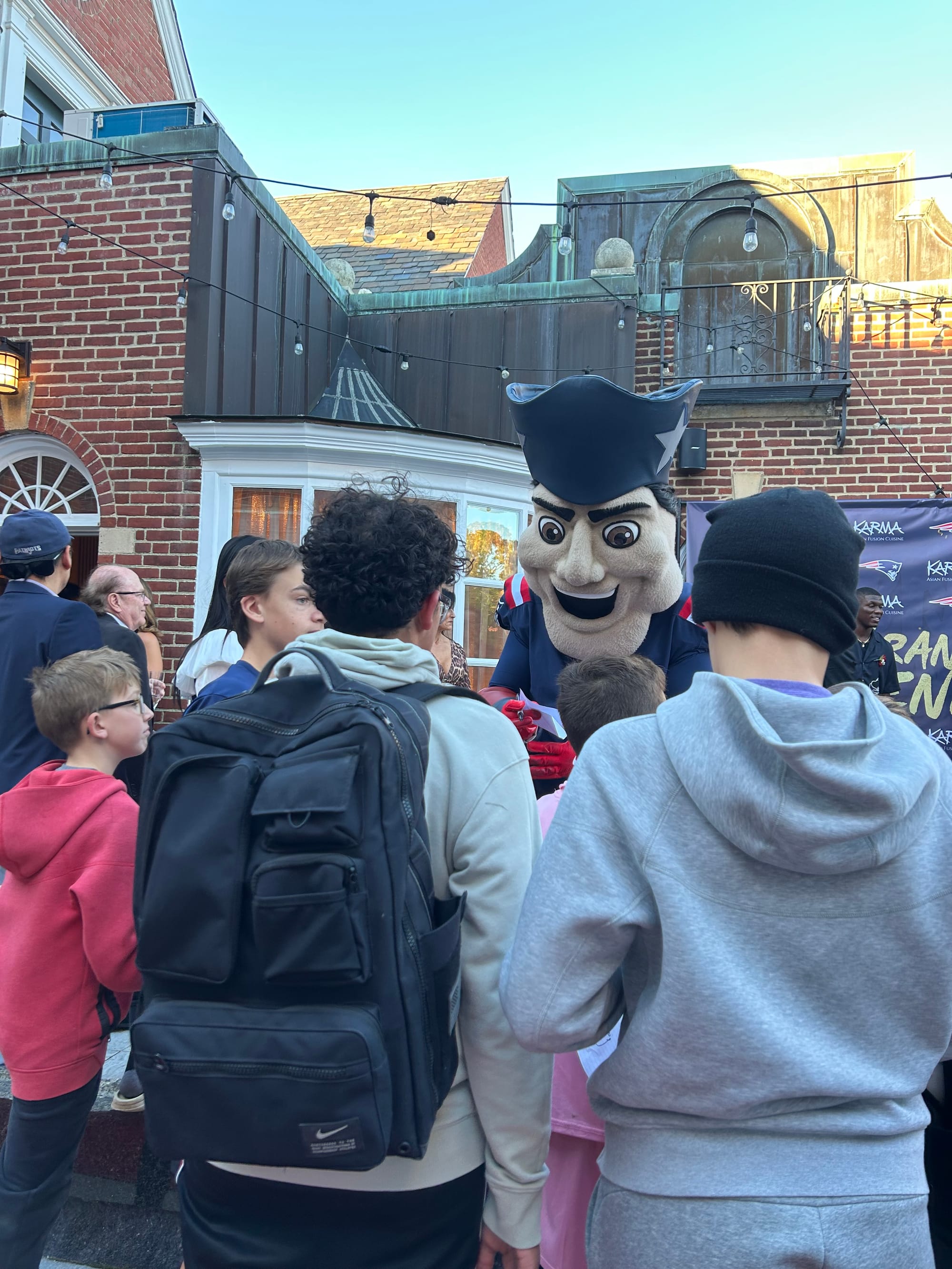 Karma is also the official sponsor of the New England Patriots, some of whom were at Tuesday’s event, along with Pat the Patriot, the team’s mascot.