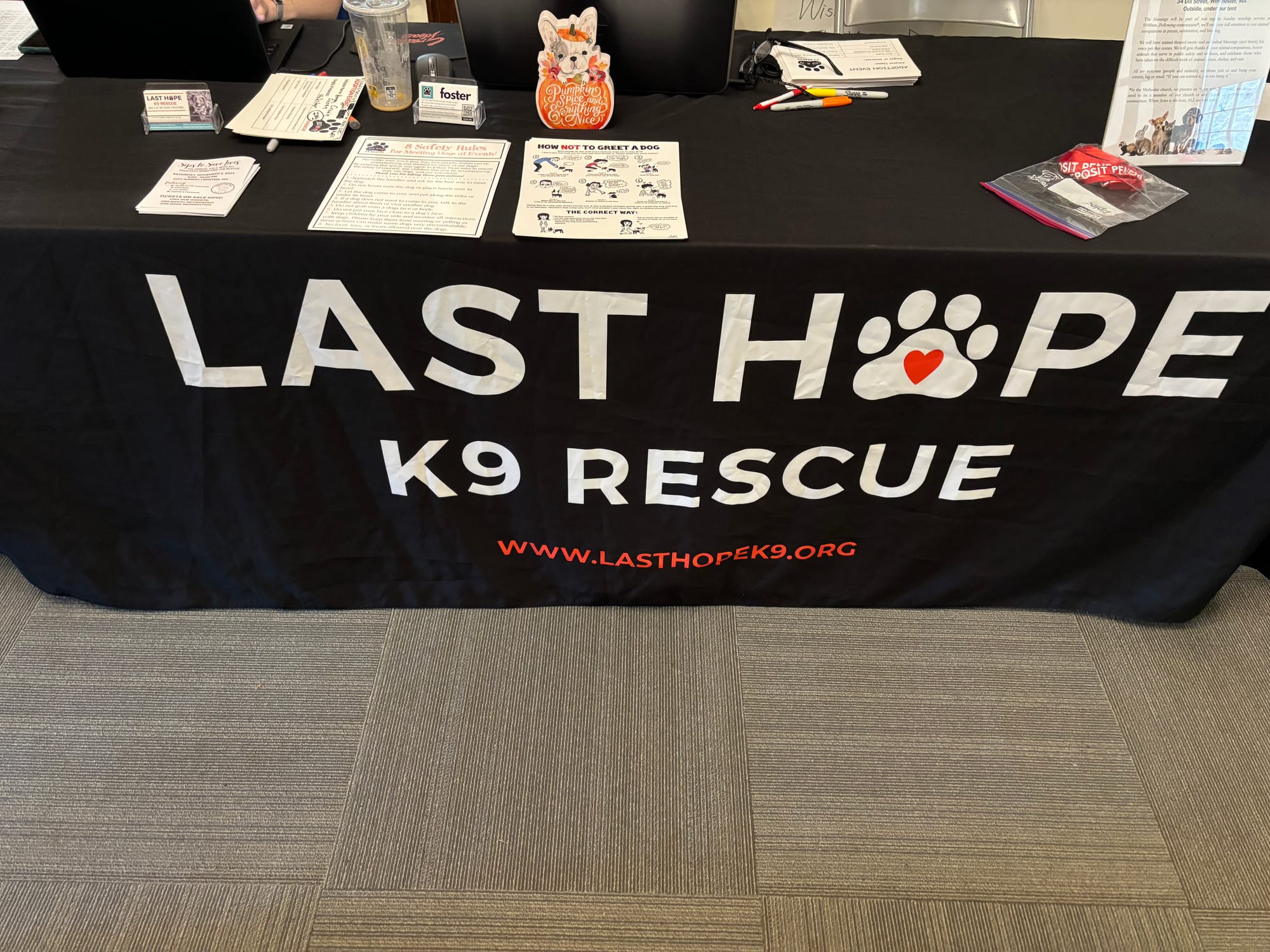 The reason? The Massachusetts-based dog rescue Last Hope K9 Rescue was holding an adoption event in the church’s multipurpose room.