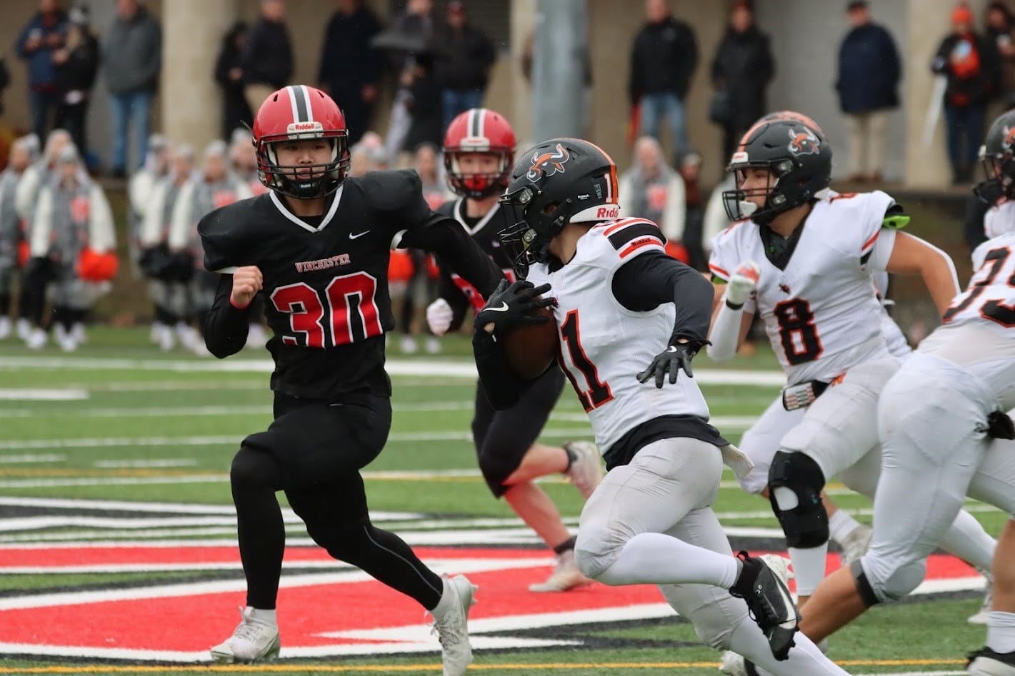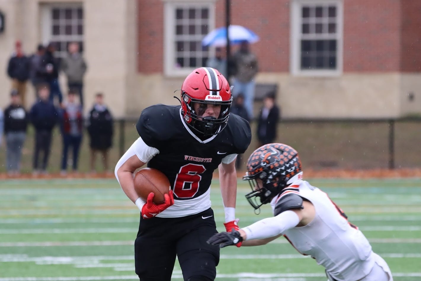Junior running back Nick Rotondi ignited the Winchester offense with an 18-yard touchdown run. His classmate Gianni DePrimeo followed up that score with a 93-yard sprint to paydirt. It was his first of three touchdowns in the game.
