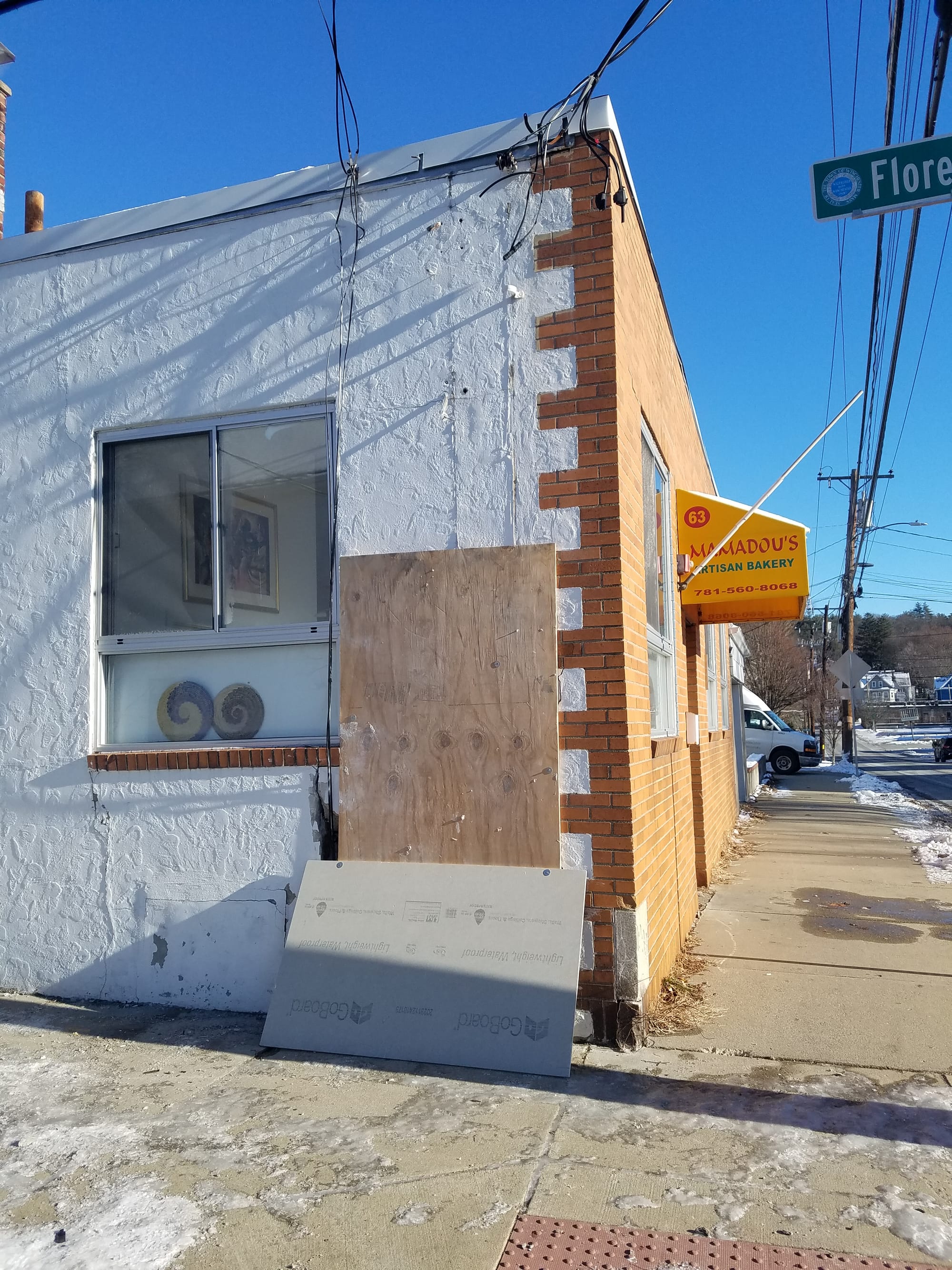 Mamadou’s Artisan Bakery, located at 63 Swanton St., had no electricity following the accident Saturday evening. Owners Mamadou and Mame Mbaye were inside speaking to customers who streamed into the business.