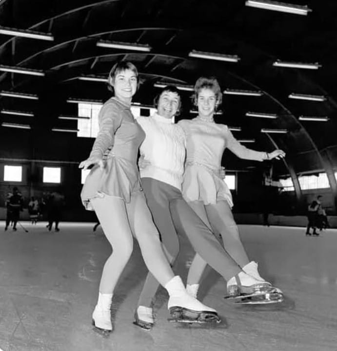 Maribel Vinson-Owen, left, Maribel Owen with her partner Chuck Foster in 1956 and Laurence Owen were all killed in a plane crash in 1961, but are remembered for their skating prowess. COURTESY PHOTOS/OLYMPEDIA