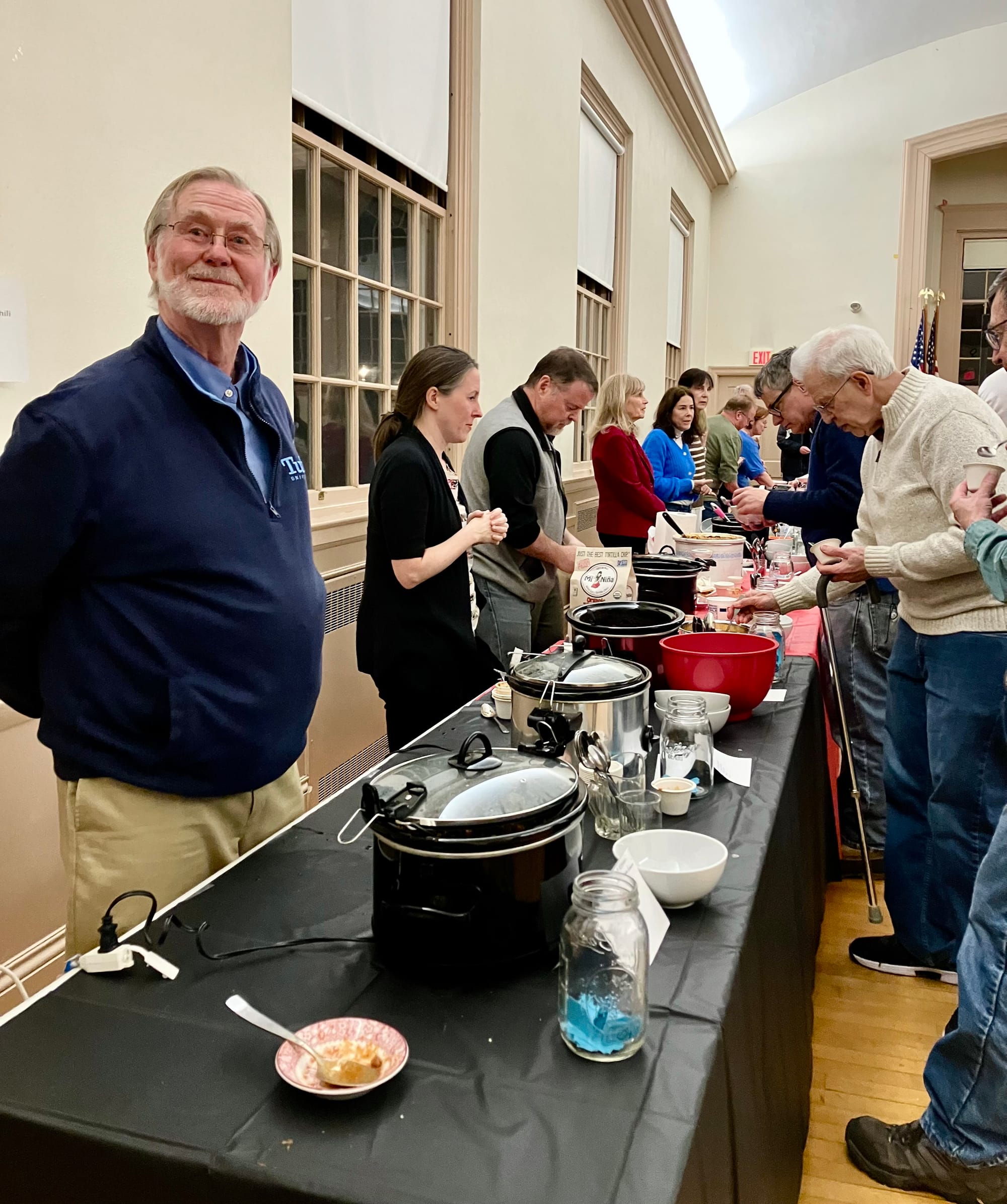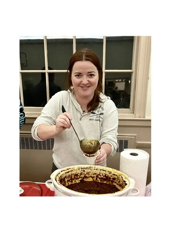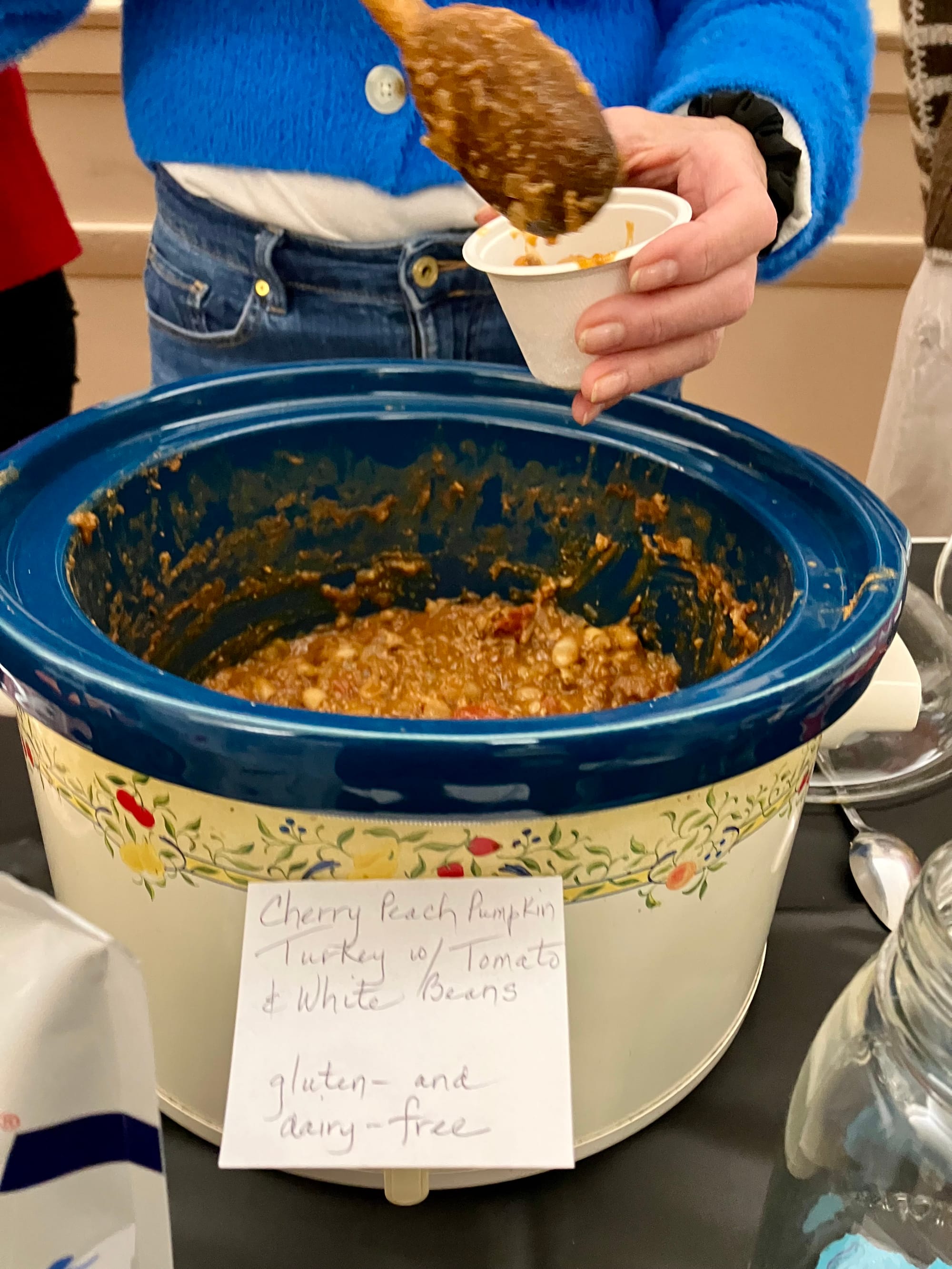 Long tables lined with crockpots flanked the church hall. Volunteers served up chilies that ran the gamut from spicy to mild, white to red, ones with beans and without, one with ground turkey, some with sirloin steak and one that actually included cherries and peaches. And all of them were free to try.