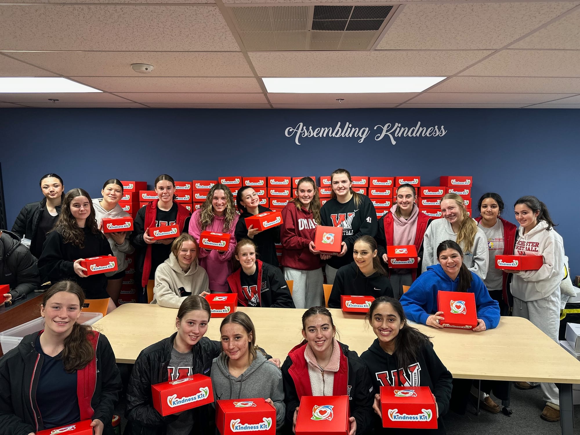 In an inspiring display of community spirit, the Winchester High School Girls Basketball Team recently visited the office of Connor’s Kindness Project in Woburn, where they assembled 190 Kindness Kits.