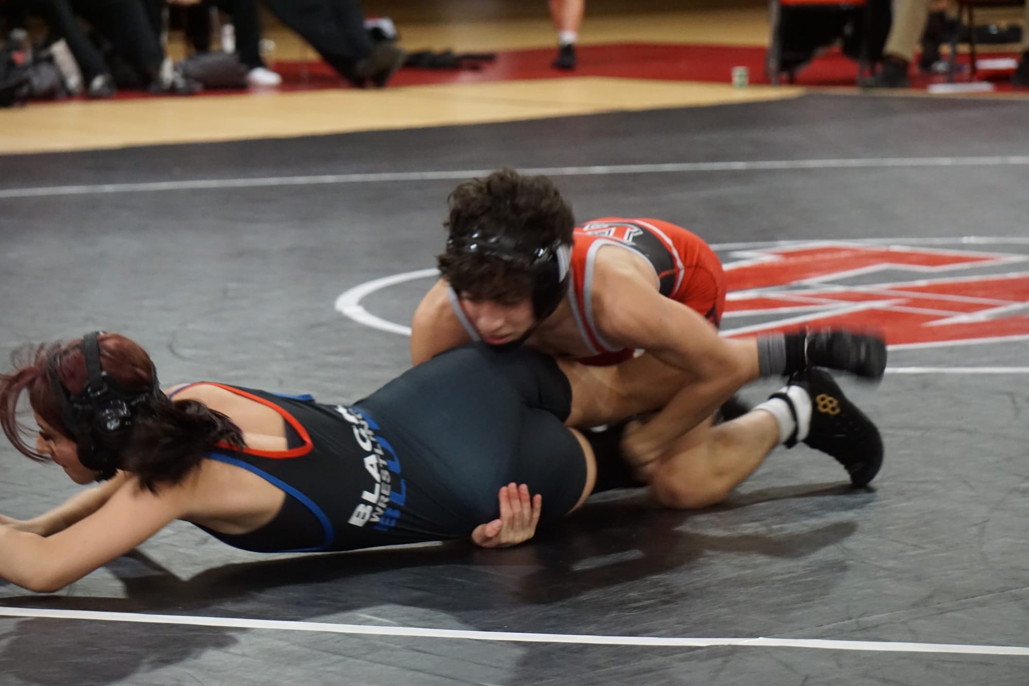 On Feb. 1, the team participated in the Duxbury Dual Tournament, going 2-1. The Red & Black defeated Dighton’s Bristol Aggie (62-16) and Boston Latin (48-23), before dropping a close encounter to host Duxbury.