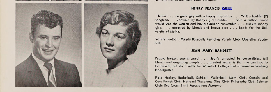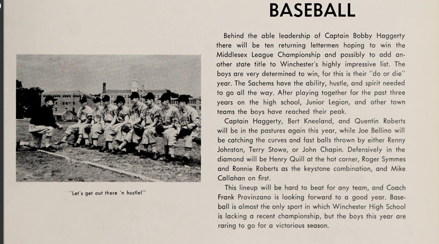 A member of the Winchester High School’s Class of 1956, Quill attended Winchester Public Schools. Quill played guard on the undefeated 1955 Winchester High School football team and third base on the baseball team that won the Middlesex League championship.