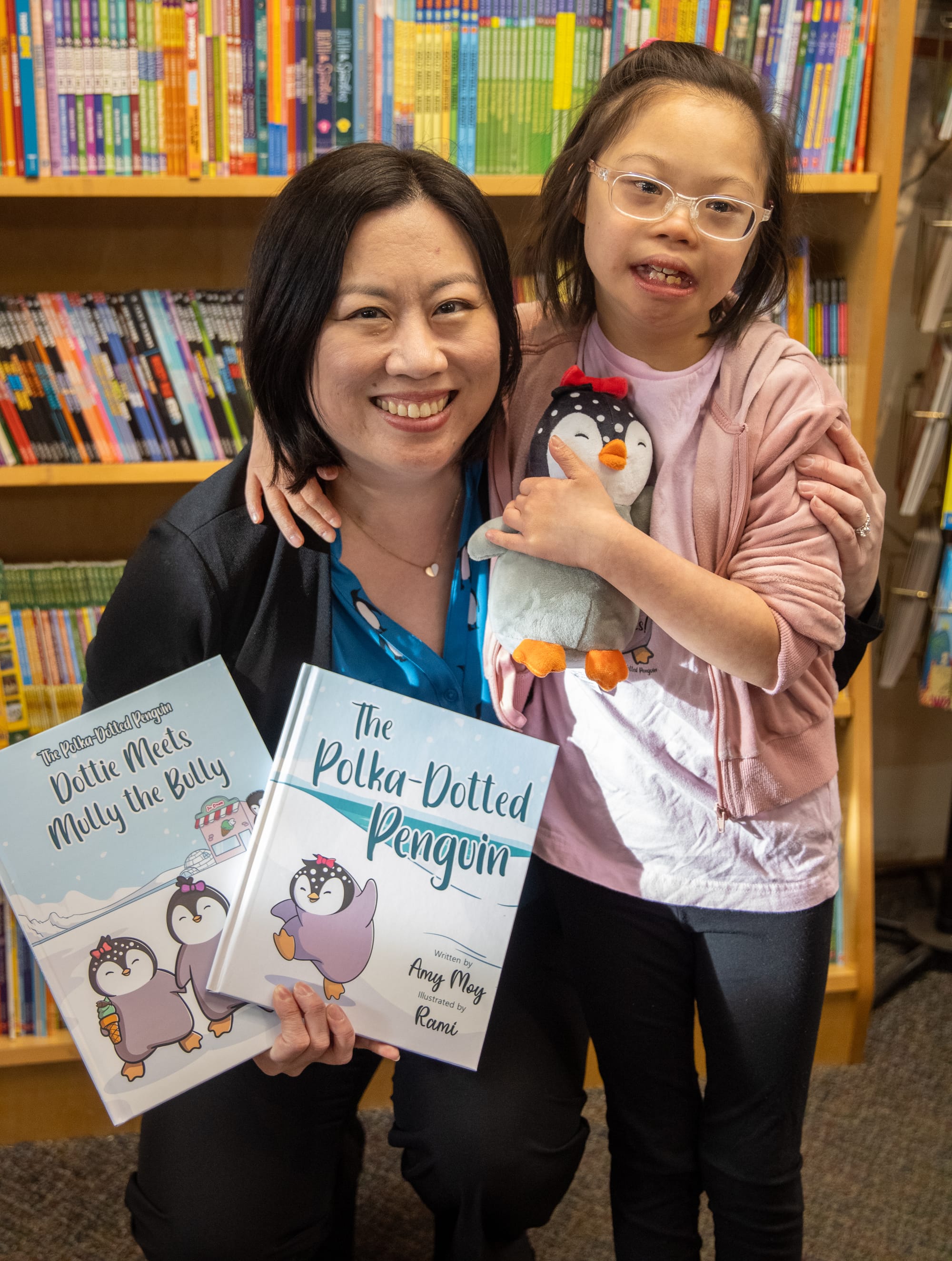 Moy, whose daughter, Evie, has Down syndrome, writes children’s books that champion diversity and inclusion. Her first self-published book, “The Polka-Dotted Penguin,” tells the story of Dottie, a penguin born with unique polka dots who embarks on a journey of self-acceptance and understanding. Through Dottie’s eyes, young readers are inspired to practice kindness and embrace individuality.