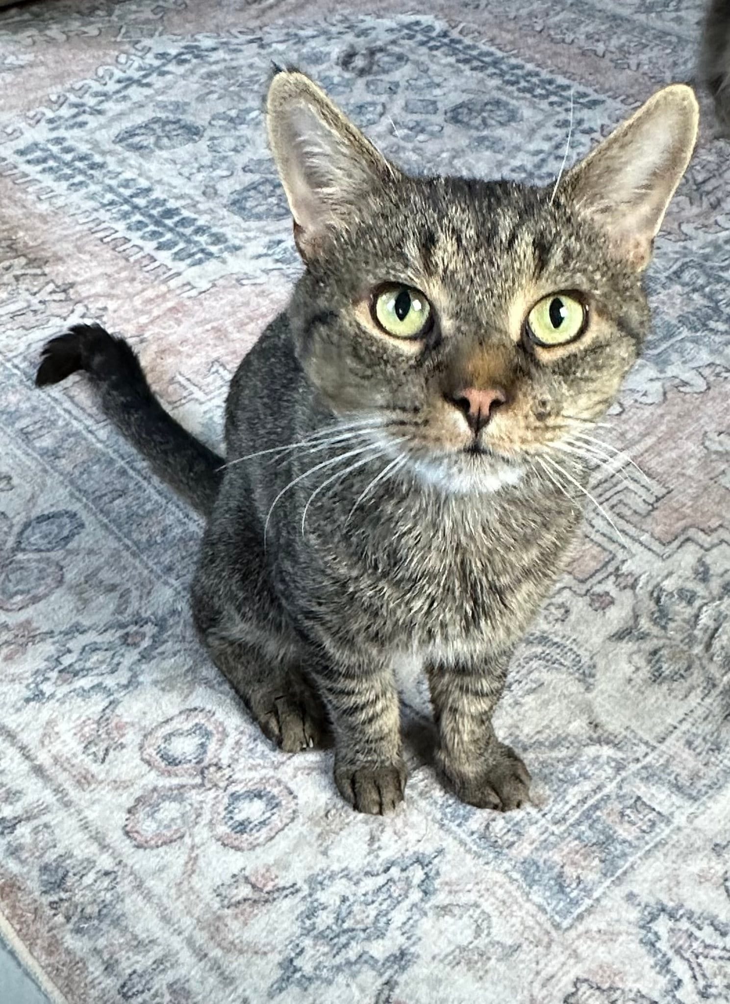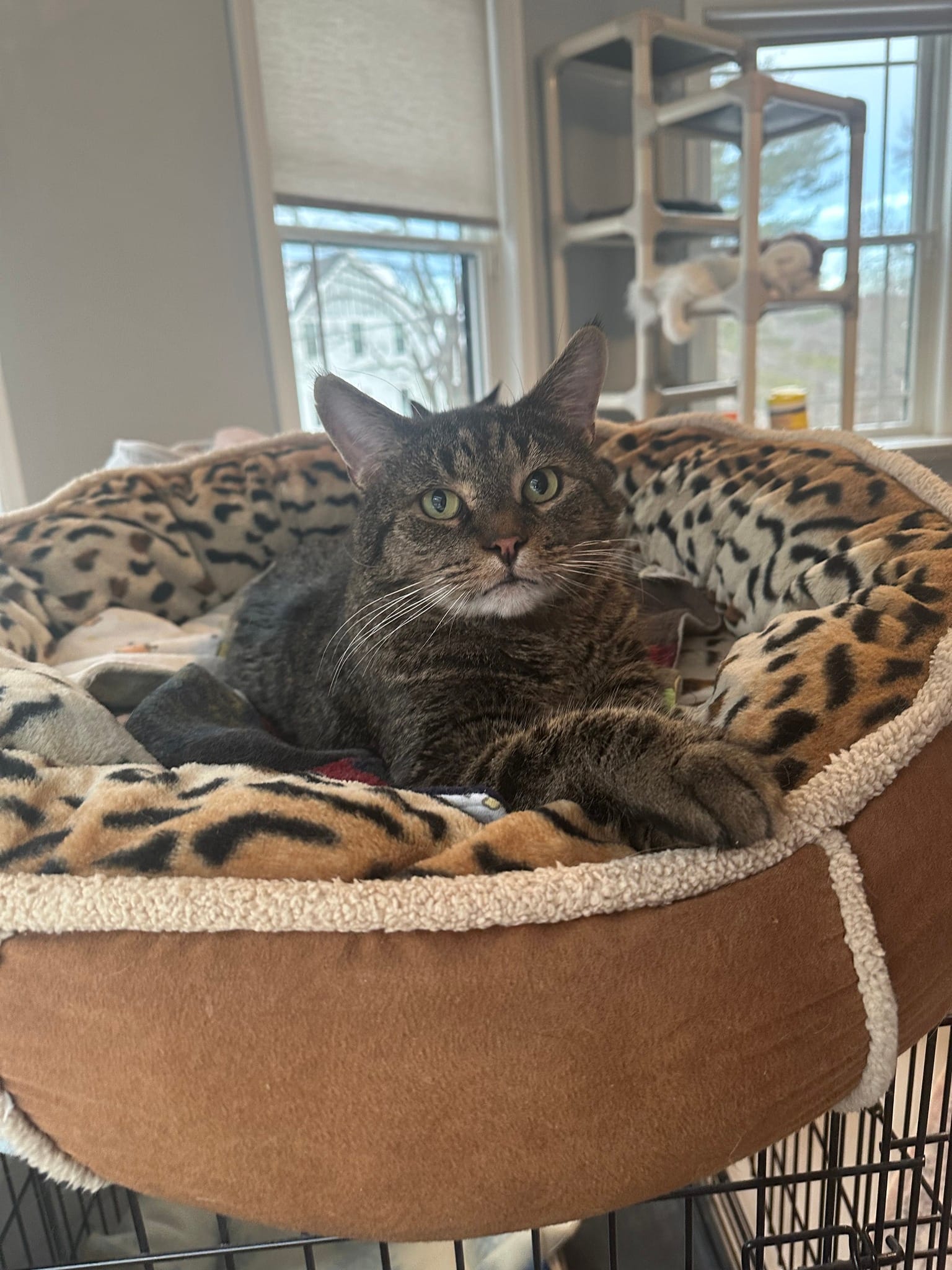 As of February, Fuzzy has no potential adopters. Interested parties can contact Lowell via Facebook or through the Woburn Feral Cat Coalition.