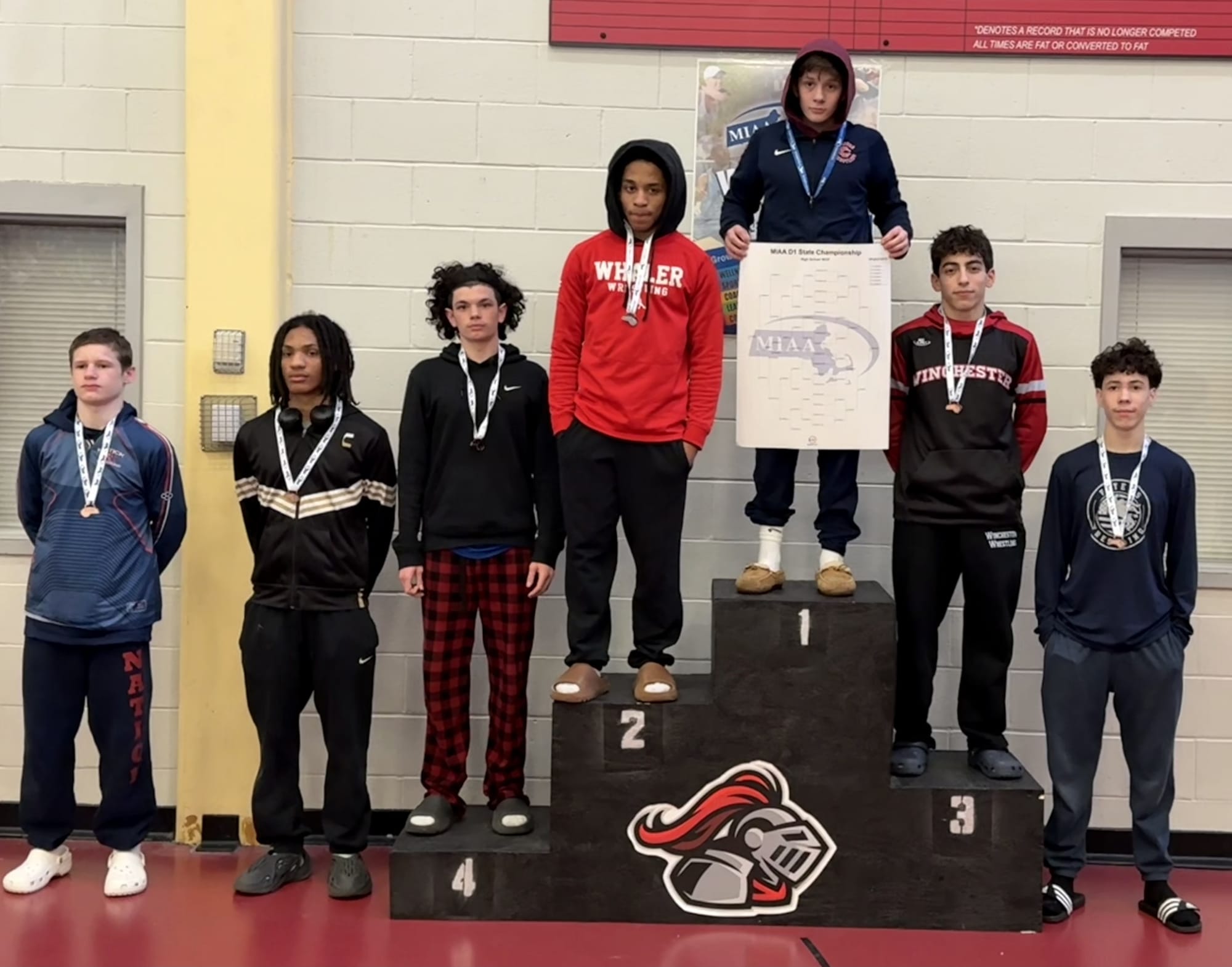 The Winchester boys competed both days, with junior captain Kai Napadow Baquero taking third place in the 113-pound weight class, while his classmate and fellow captain Eddie Donlon came in seventh among the 132-pound grapplers.