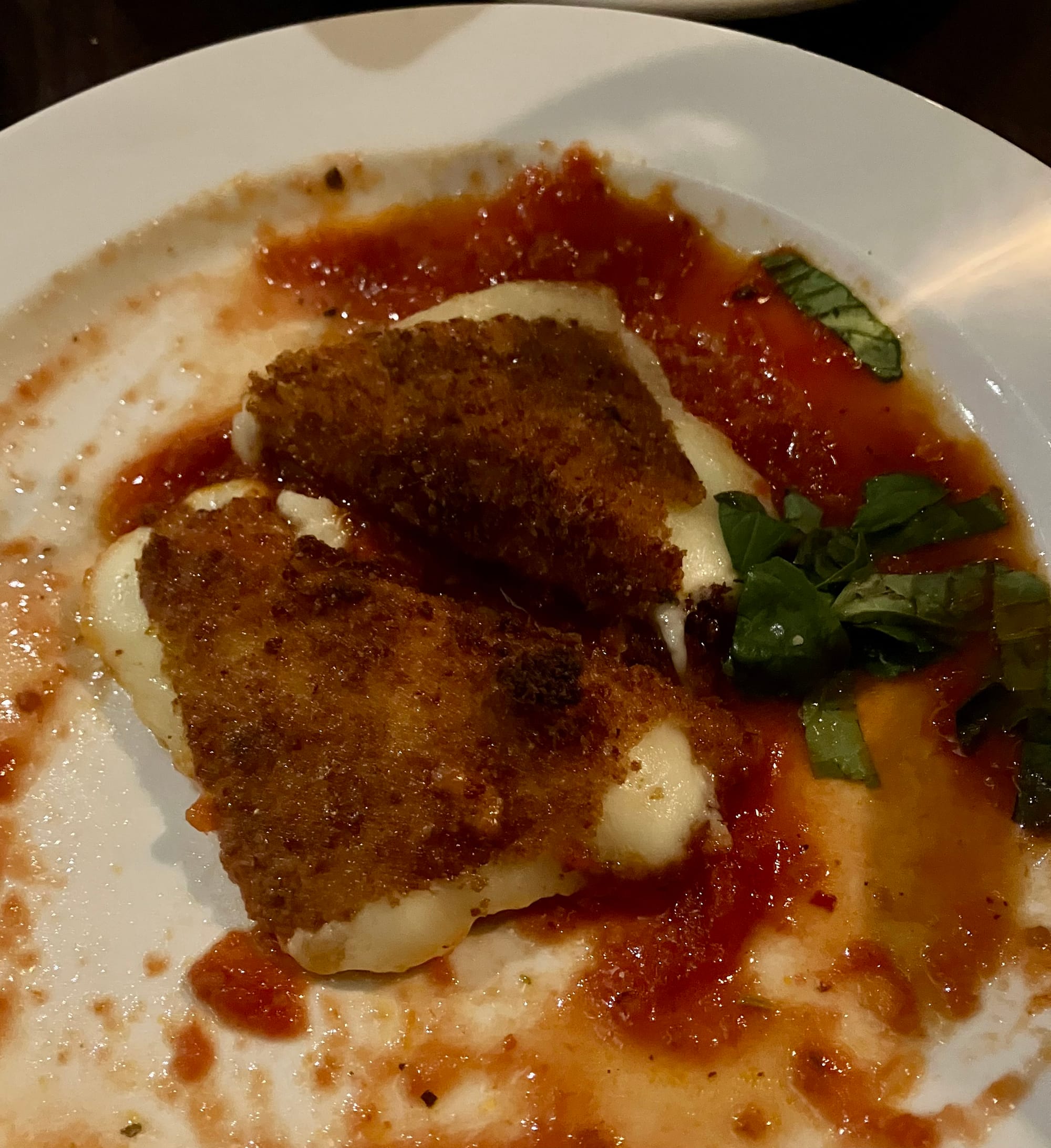 The crunch of the breading combined with the softness of the melty mozzarella was divine, but I have to say the prosciutto was a little hard to find. That is not to say I wouldn’t order it again – it was still worth the price.