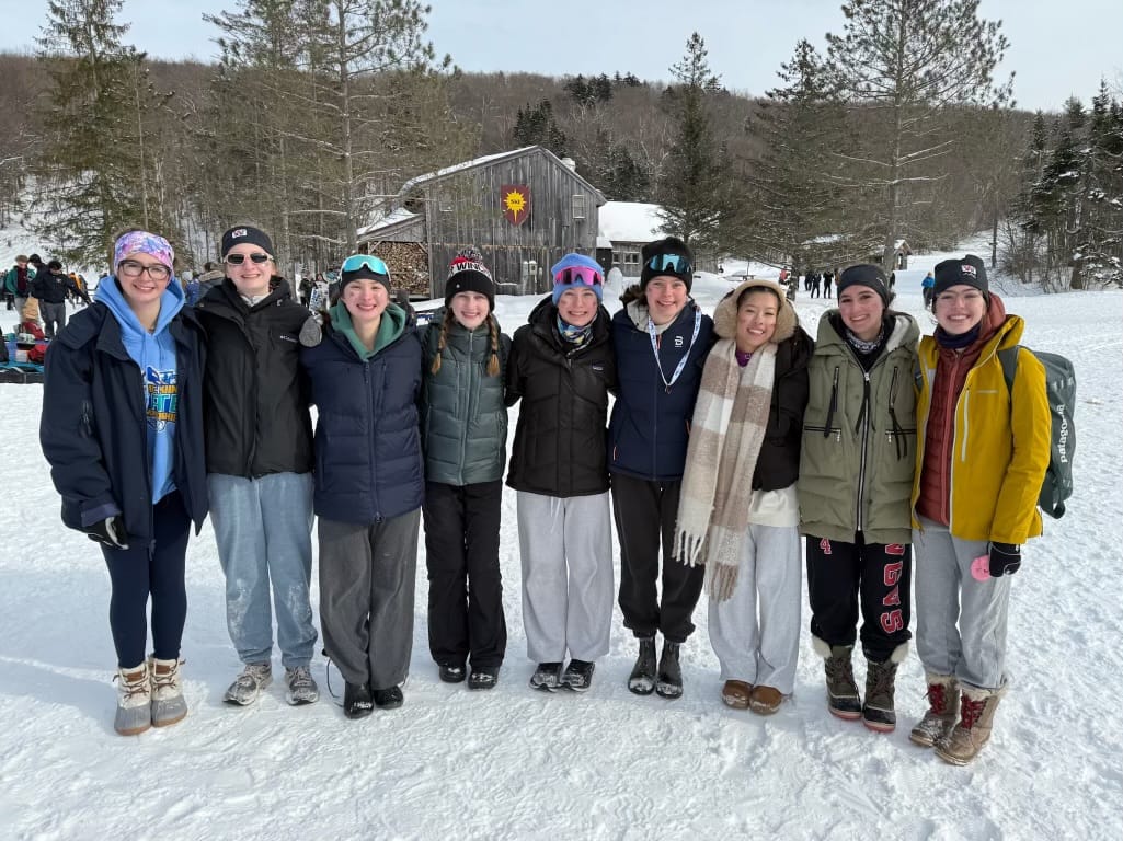 The Winchester High School girls Nordic ski team won first in the Mass Bay West Ski league. This has been an unprecedented season for the team.