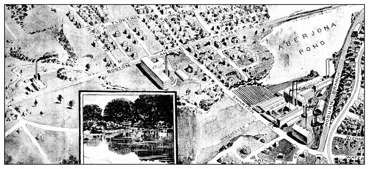 Surviving from the 19th into the early 20th centuries were the Bacon Felt Co., Eastern Felt Co., Whitney Machine Co., McKay/Puffer manufacturing, the McLatchy patent leather factory, Whitten gelatin factory, Beggs and Cobb tannery, and J .H. Winn’s sons. One large industry added was the Winchester Brick Company, which opened on East Street about 1920.
