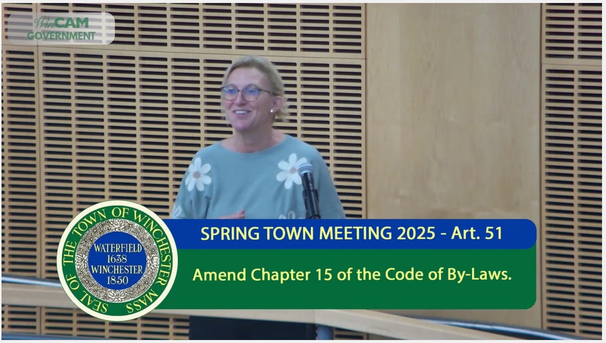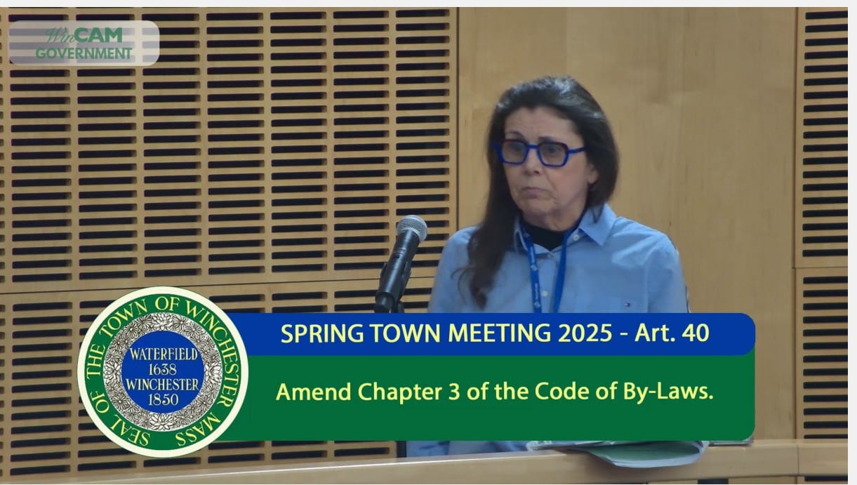 The entirety of Article 38 will be taken up by Town Meeting when it reconvenes on May 5 at Winchester High School, beginning at 6:30 p.m. So far, Town Meeting has completed 14 of the 18 bylaw changes.