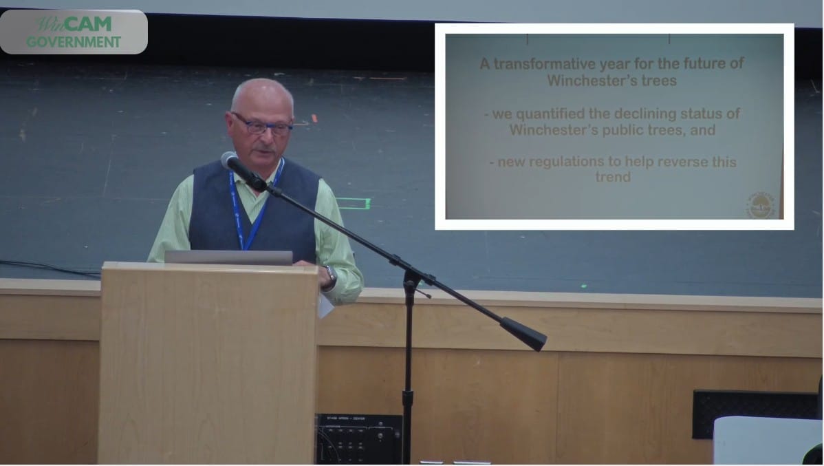 Miller also presented the Permanent Street Tree Committee’s report, being that group’s chair as well. He said a Tree Canopy Analysis was done and the findings showed that from 2012 to 2023, Winchester had lost a significant proportion of its trees.