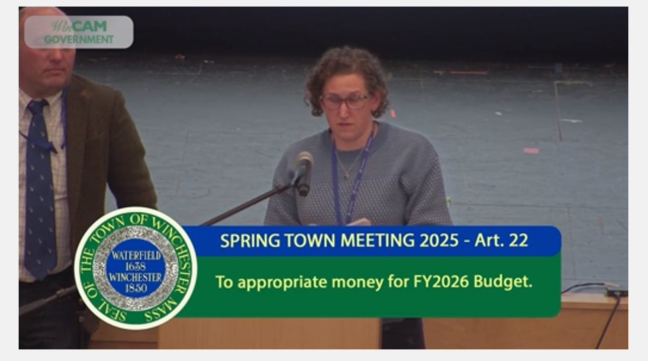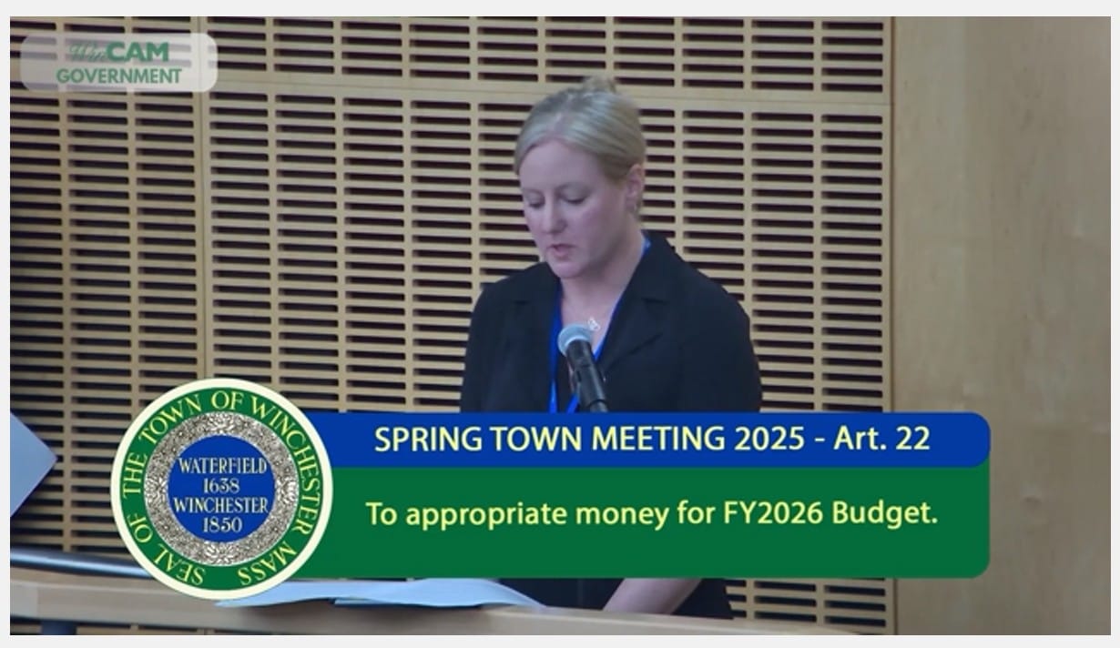 Town Meeting is expected to meet in its final session on Thursday, May 8 at Winchester High School auditorium, beginning at 6:30 p.m.