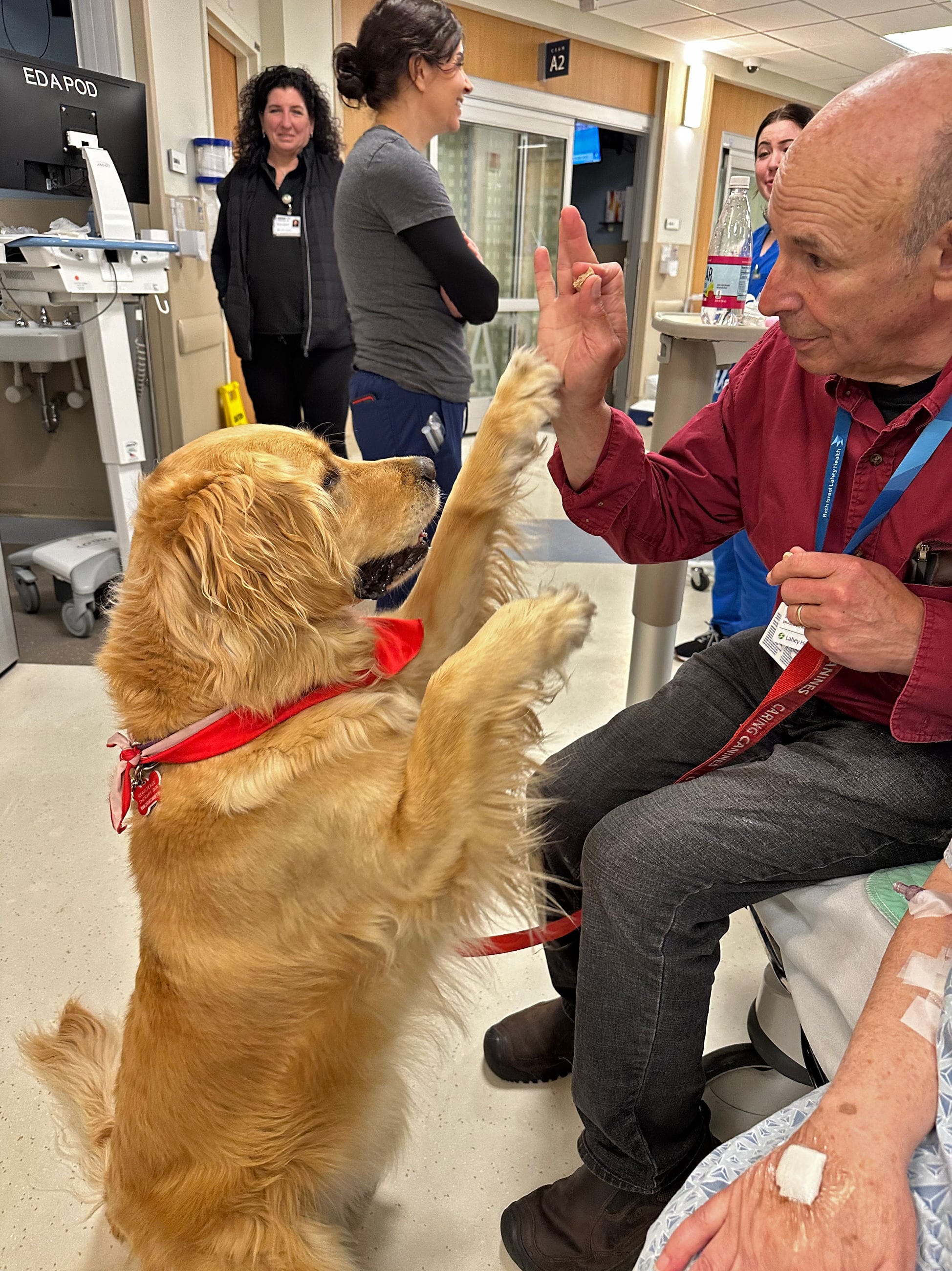 Not only do they visit patients in different departments, but also, says Siteman, “Lynnette gave me the idea to go into waiting rooms where I ask, ‘Does anyone want to be distracted by a dog?’”