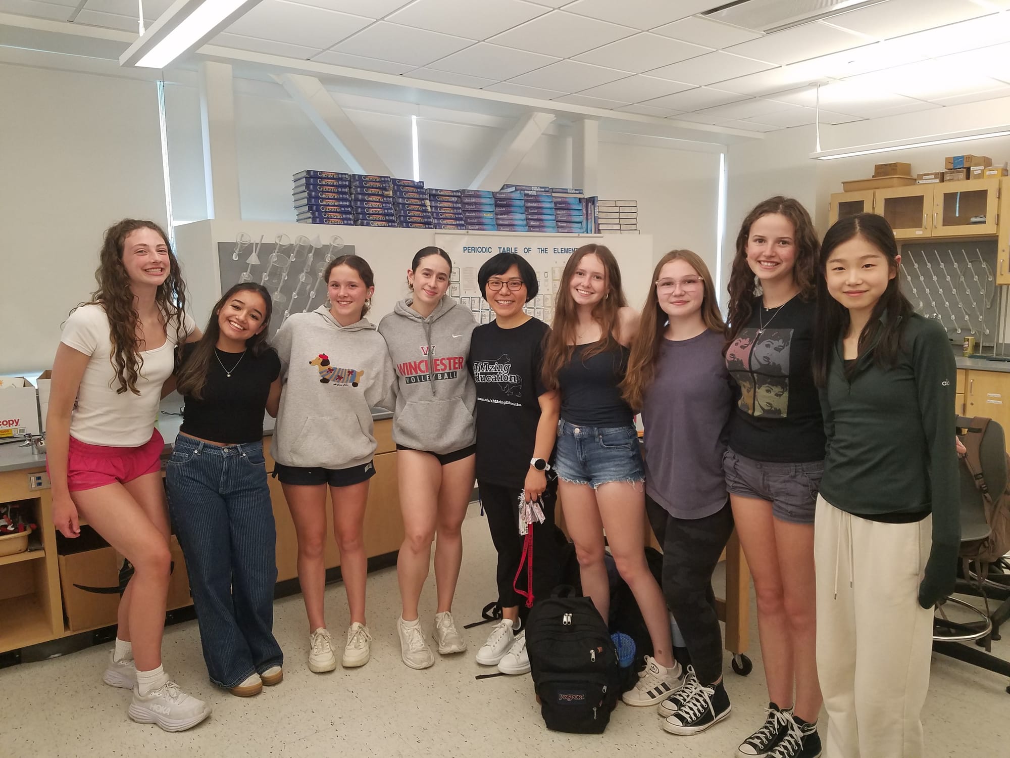 Defne Mergen, Amelia Holmes, Mariel Nagler, Sierra Scott, Alysa Zhang and Eloise Woelk gather and praise their teacher, her organizational skills, how she always has labs and other materials graded the next day, her enthusiasm for her students…and on it goes.