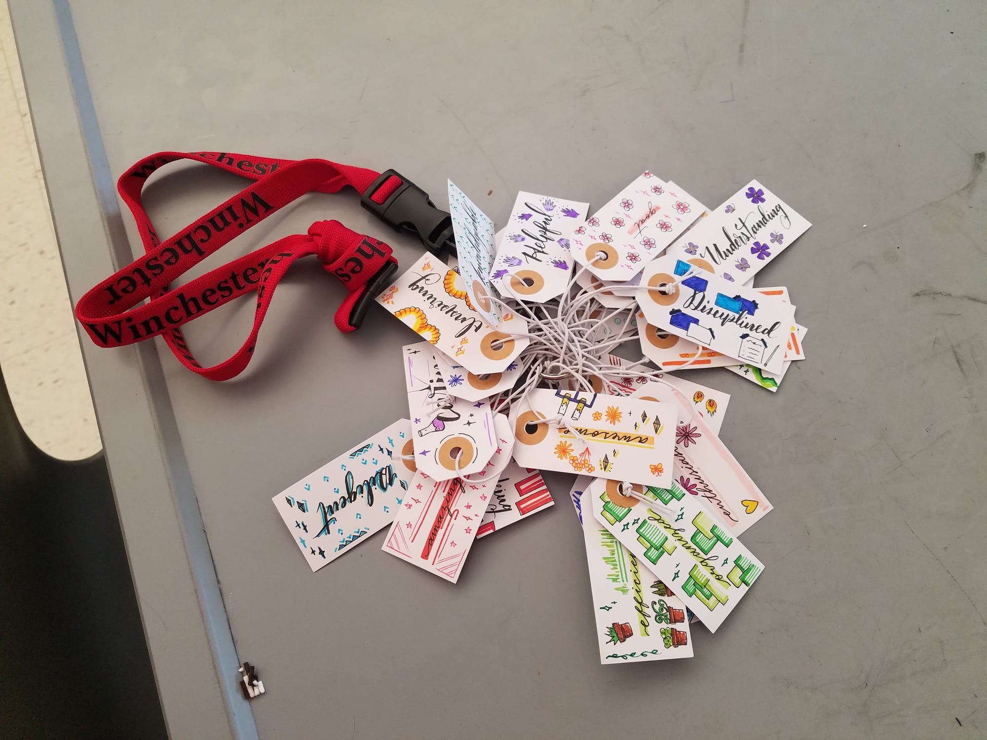 During the ceremony, Ritchie gave Zhou a special gift — a lanyard with one word tags, each representing the descriptions of her given by students. Ritchie said a student actually designed each tag especially for Zhou.