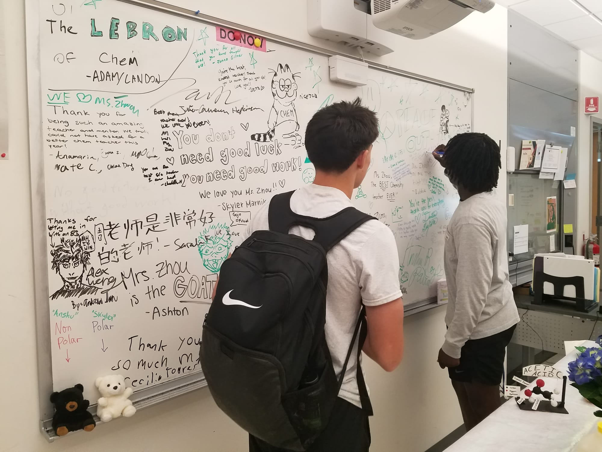 It’s not news to Charlotte Gately, a senior who took AP chemistry with Zhou and is her teaching assistant in her honors chemistry class.