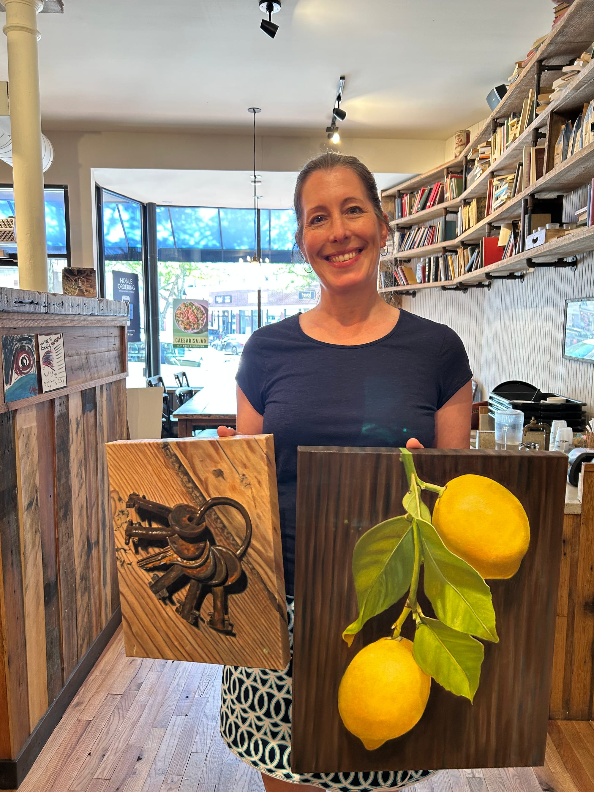 Her genre is photorealism, the art of painting with exact details, mimicking a photograph. And although she sells her paintings, Kamikawa says, “Some folks can’t afford them, so I started making ‘price-point friendly’ objects,” including prints, greeting cards and coasters.