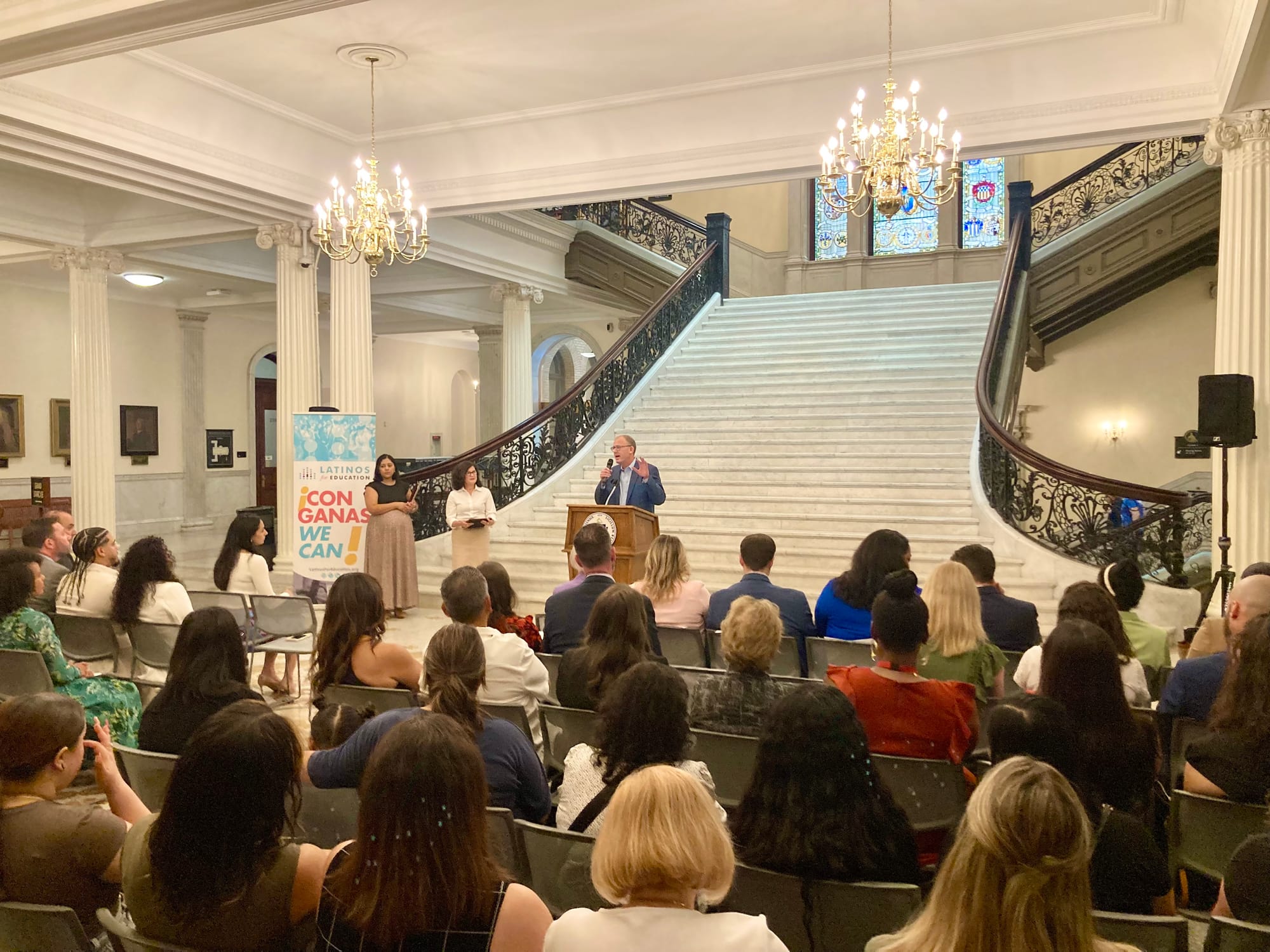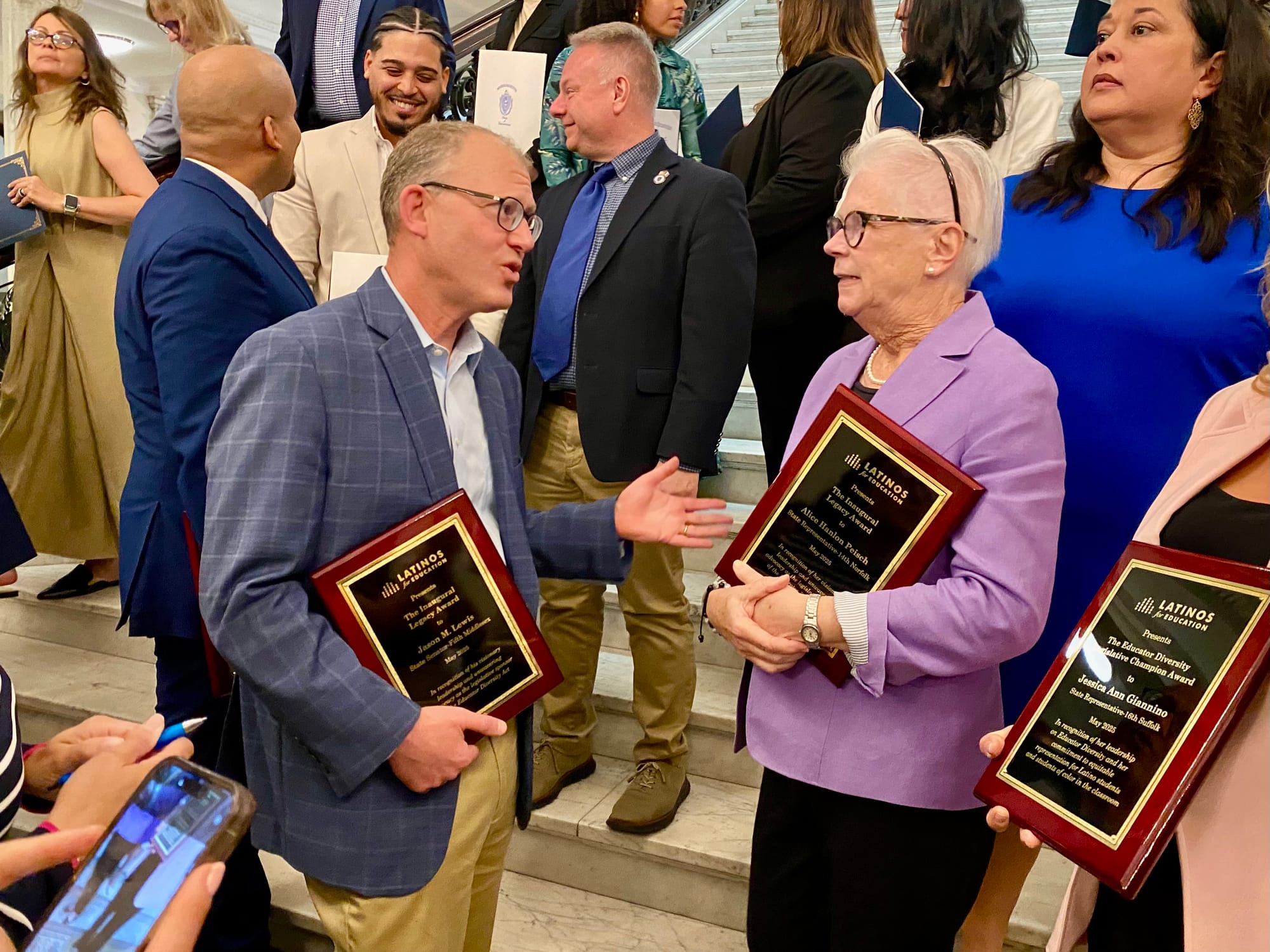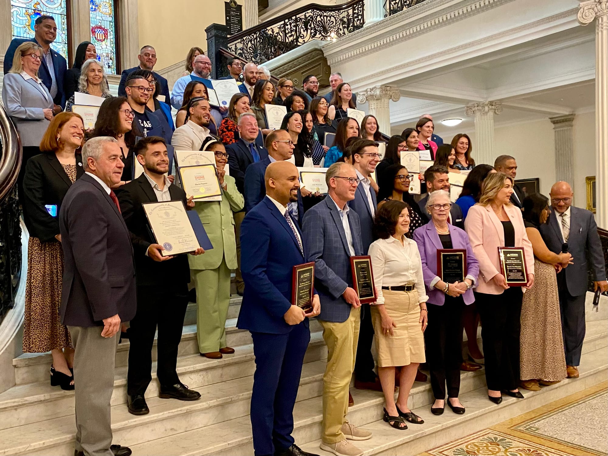 The ceremony took place on May 28, 2025, at the State House alongside the presentation of the Shine Awards to honor exemplary Latino educators from across Massachusetts.